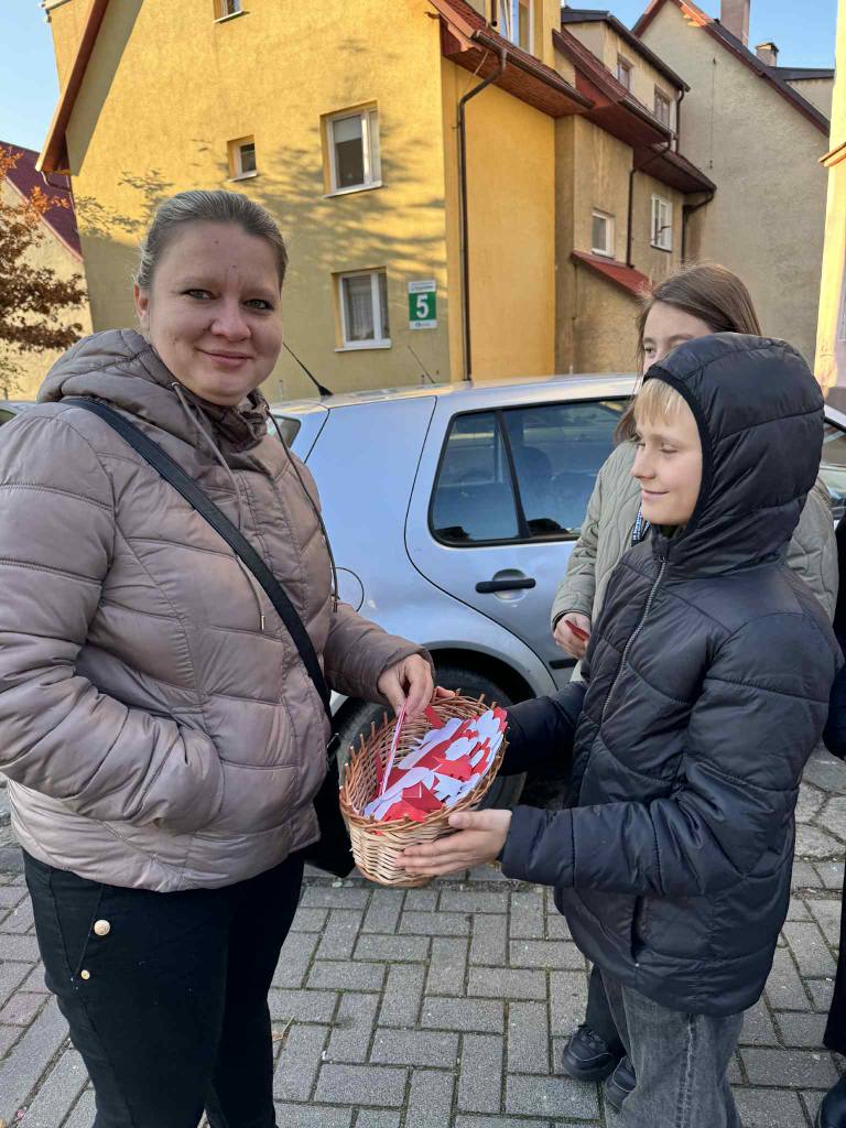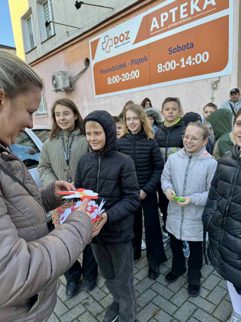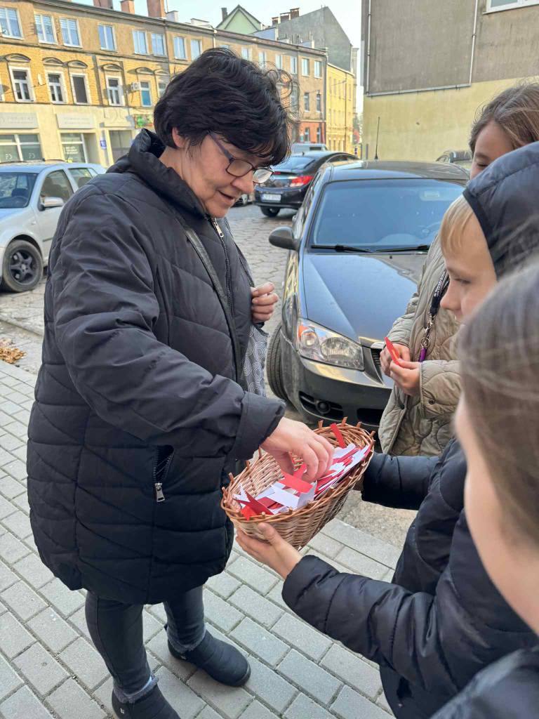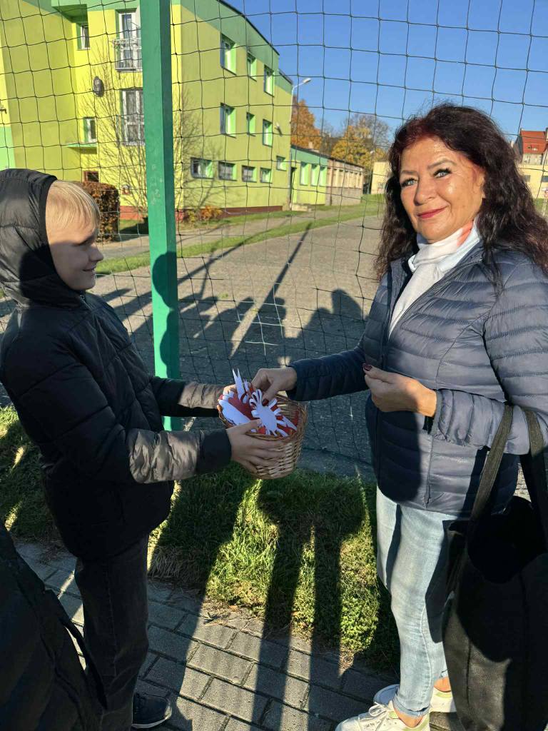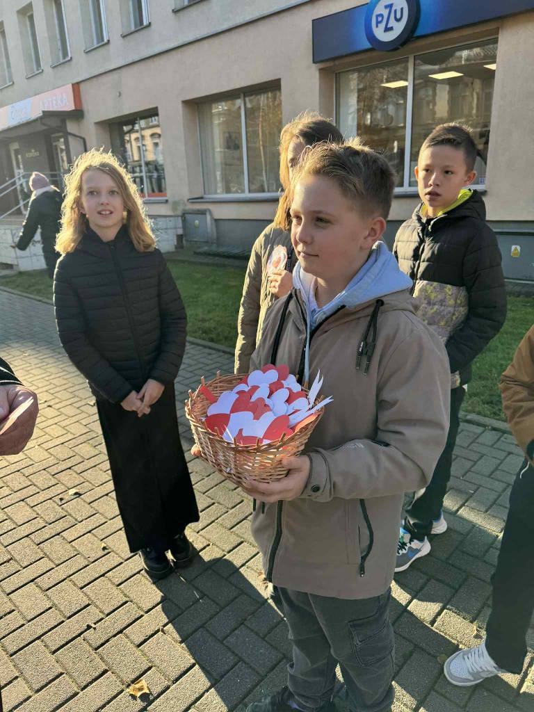 Uczniowie naszej szkoły uczcili Narodowe Święto Niepodległości w wyjątkowy sposób. Podczas lekcji historii wykonali własnoręcznie biało-czerwone kotyliony, a następnie wyruszyli z nimi na ulice miasta. Z uśmiechem i dumą wręczali je przechodniom, przypominając o wartości wolności i znaczeniu 11 listopada w historii Polski.