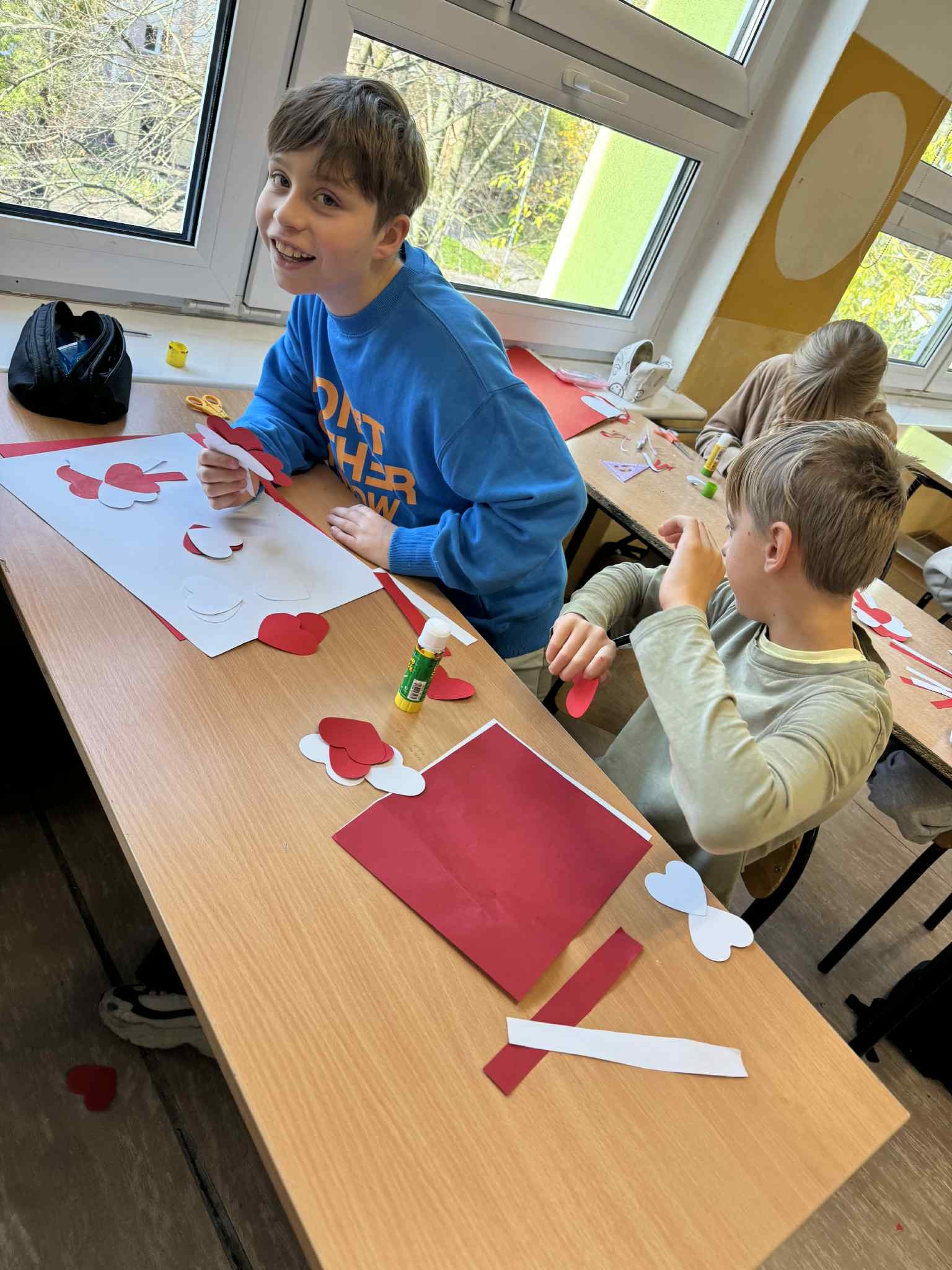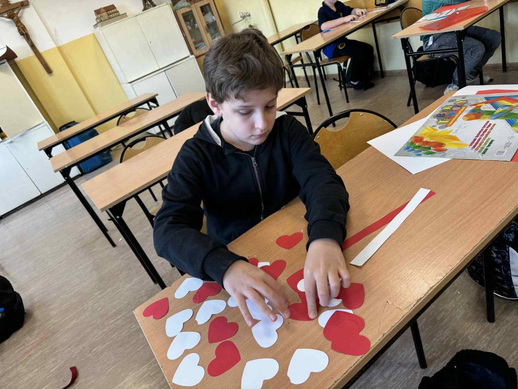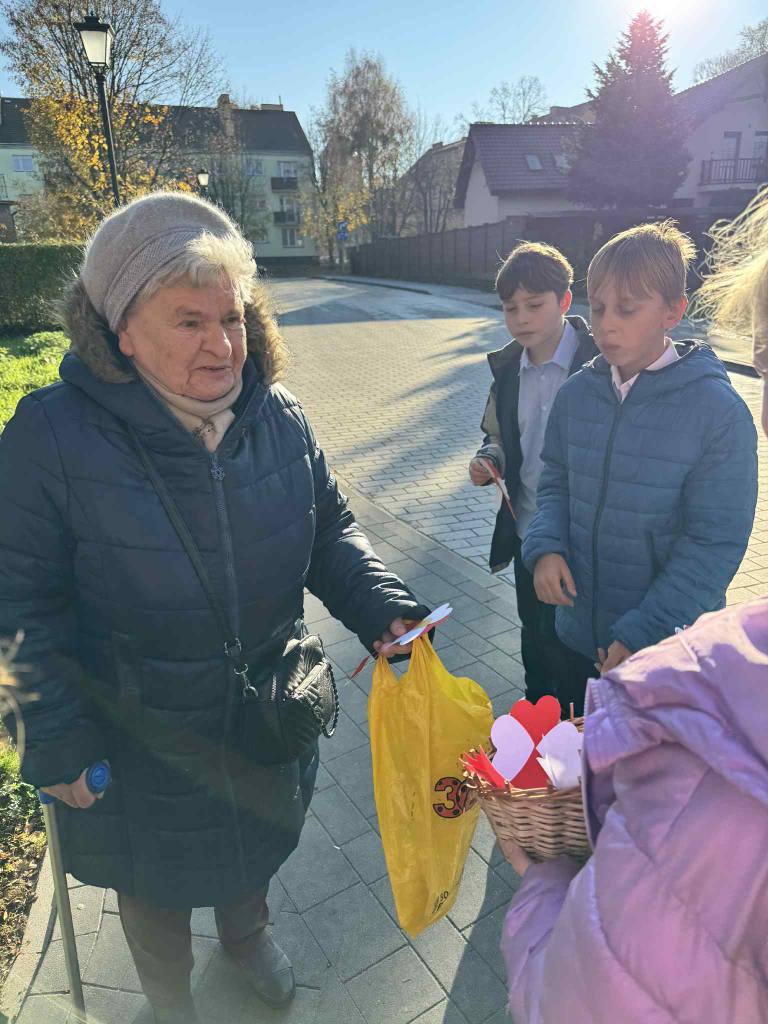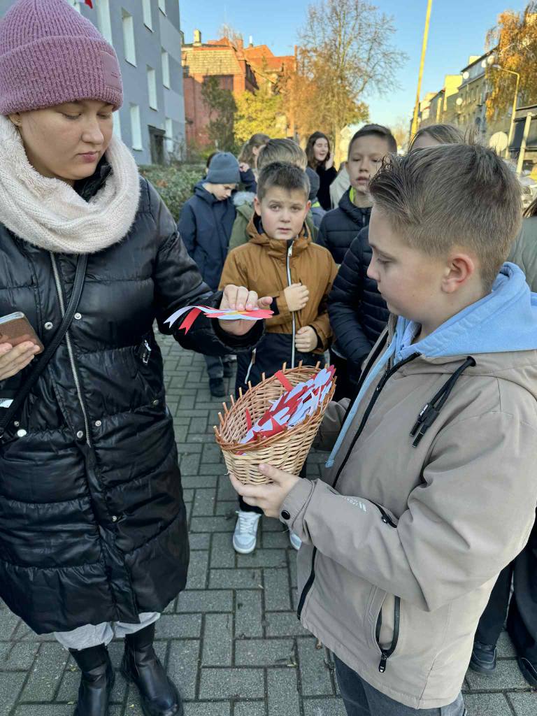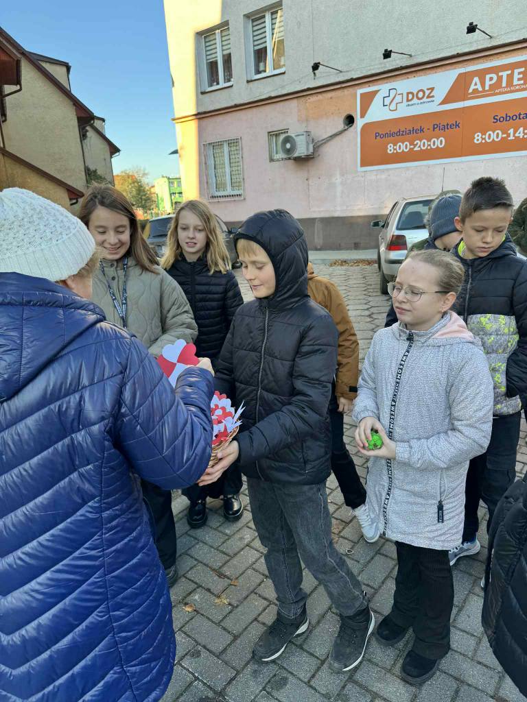 Uczniowie naszej szkoły uczcili Narodowe Święto Niepodległości w wyjątkowy sposób. Podczas lekcji historii wykonali własnoręcznie biało-czerwone kotyliony, a następnie wyruszyli z nimi na ulice miasta. Z uśmiechem i dumą wręczali je przechodniom, przypominając o wartości wolności i znaczeniu 11 listopada w historii Polski.
