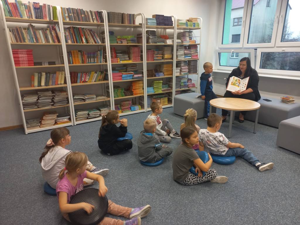 Dzieci z oddziału zerowego miały okazję uczestniczyć w spotkaniu czytelniczym, poprowadzonym przez Panią Dyrektor Martę Dolną.