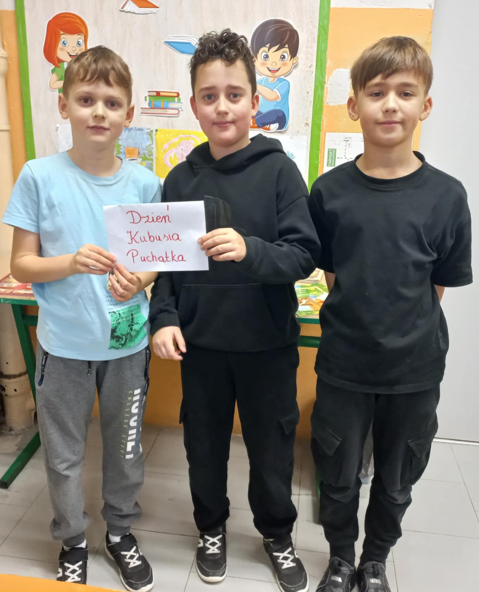 Przyjaciele ze Stumilowego Lasu, znani są wszystkim od wielu lat. Okazuje się, że i w naszej szkole są fani sympatycznego Misia. Dzieci chętnie sięgały po książki o Kubusiu, a zagadki cieszyły się dużym zainteresowaniem.