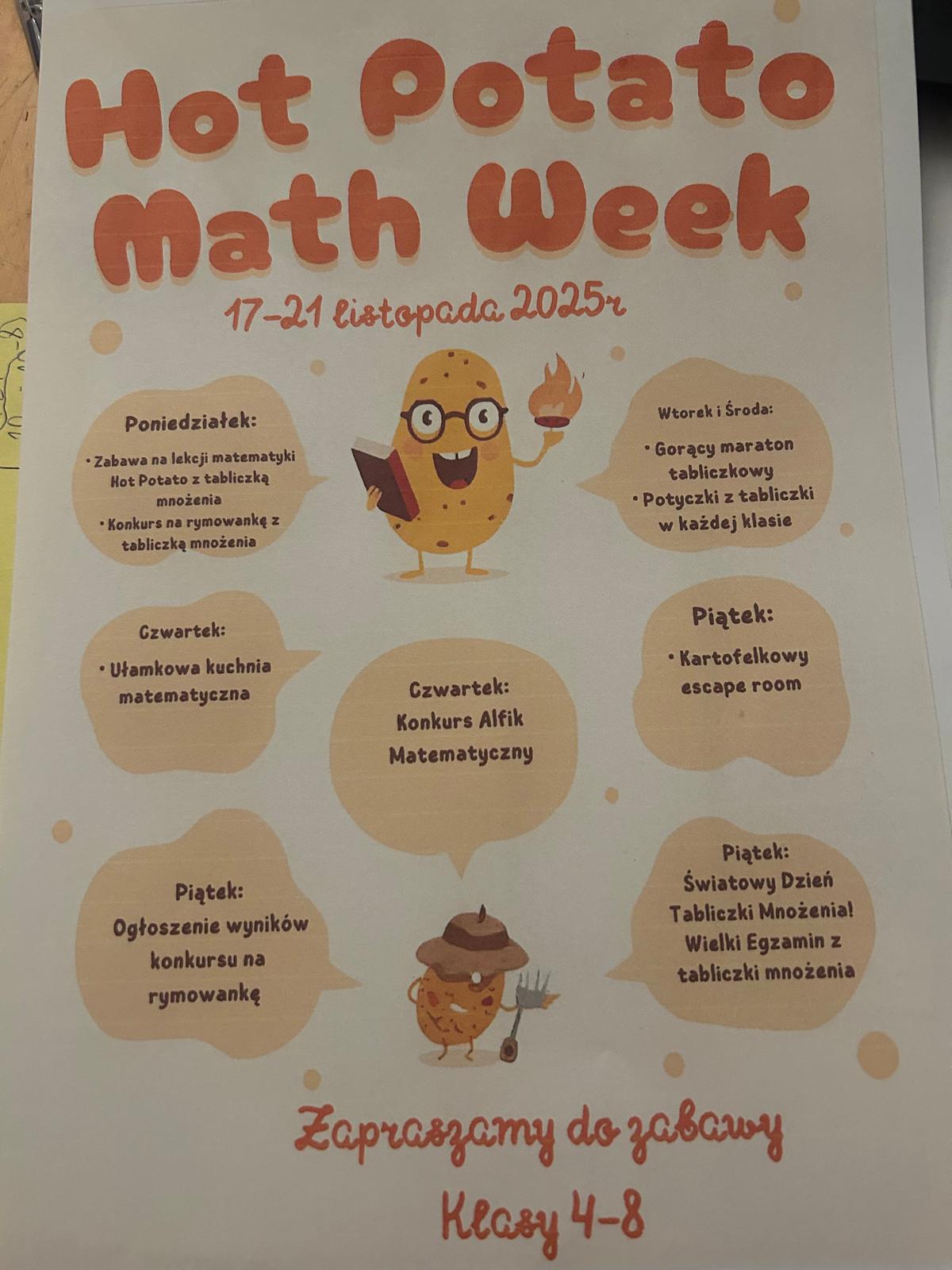 Nauczyciele matematyki zapraszają uczniów klas IV - VIII na "Tydzień matematyki z gorącym ziemniakiem".