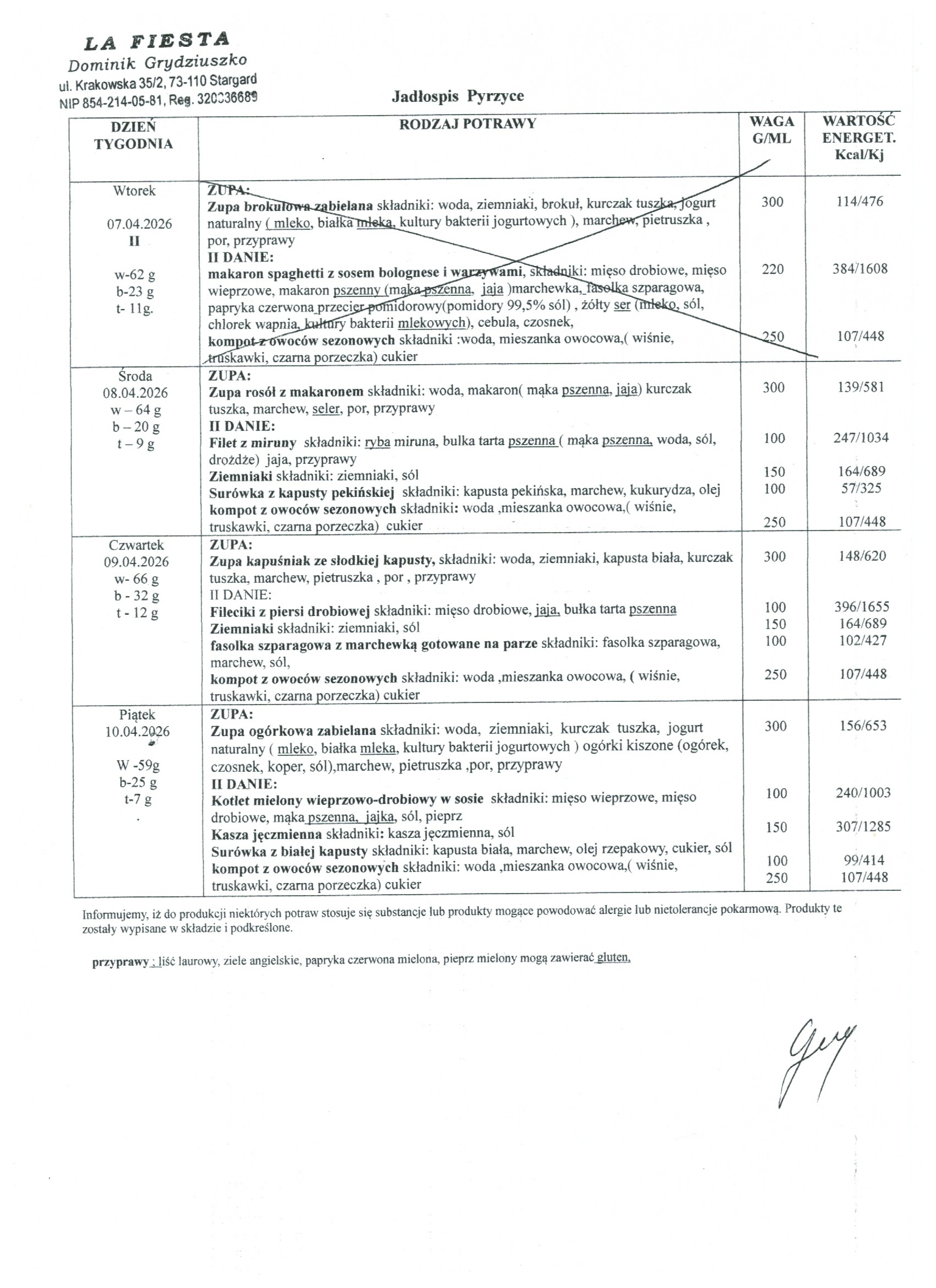 Jadłospis na tydzień 08.04.2026 - 10.04.2026