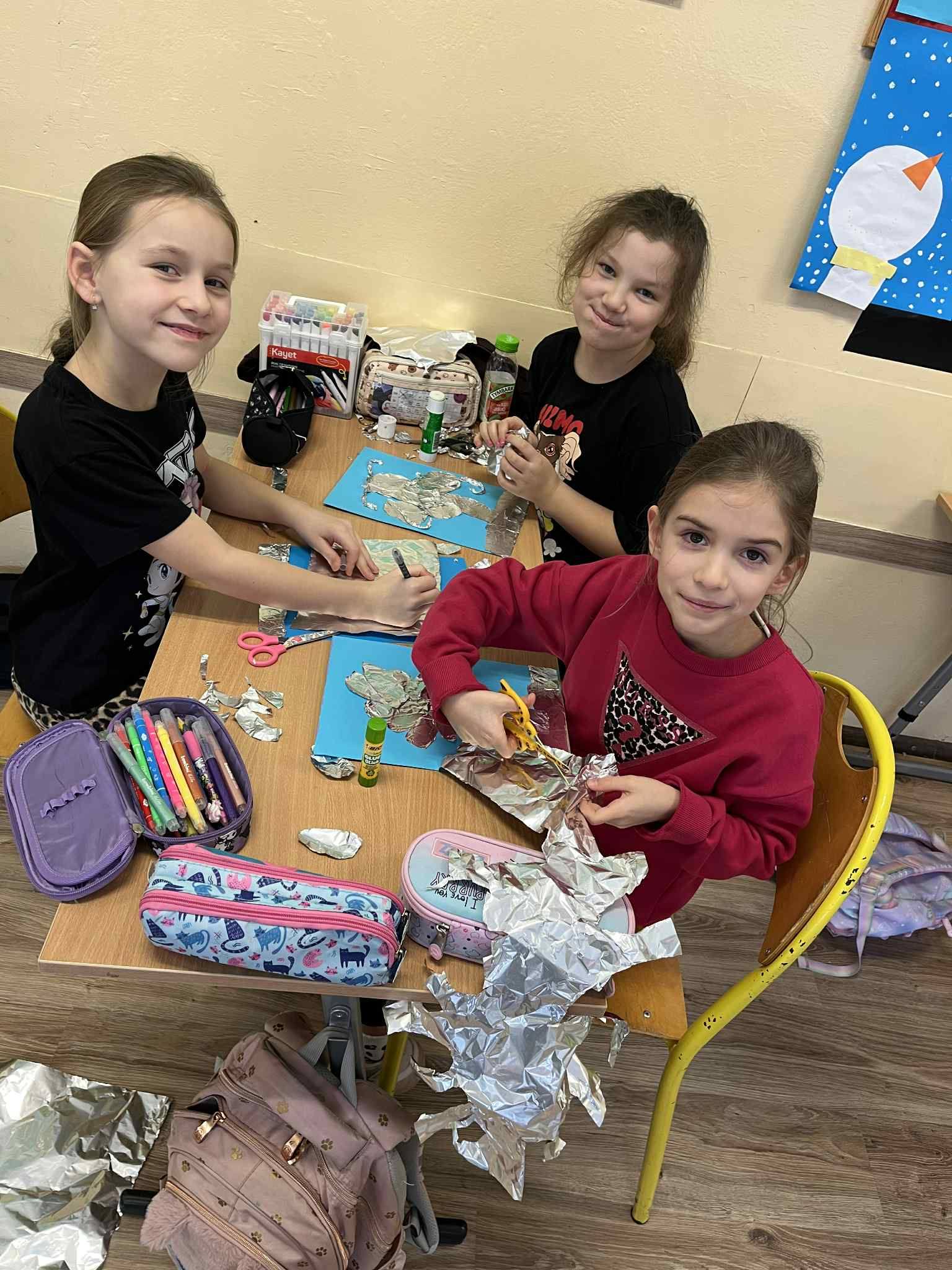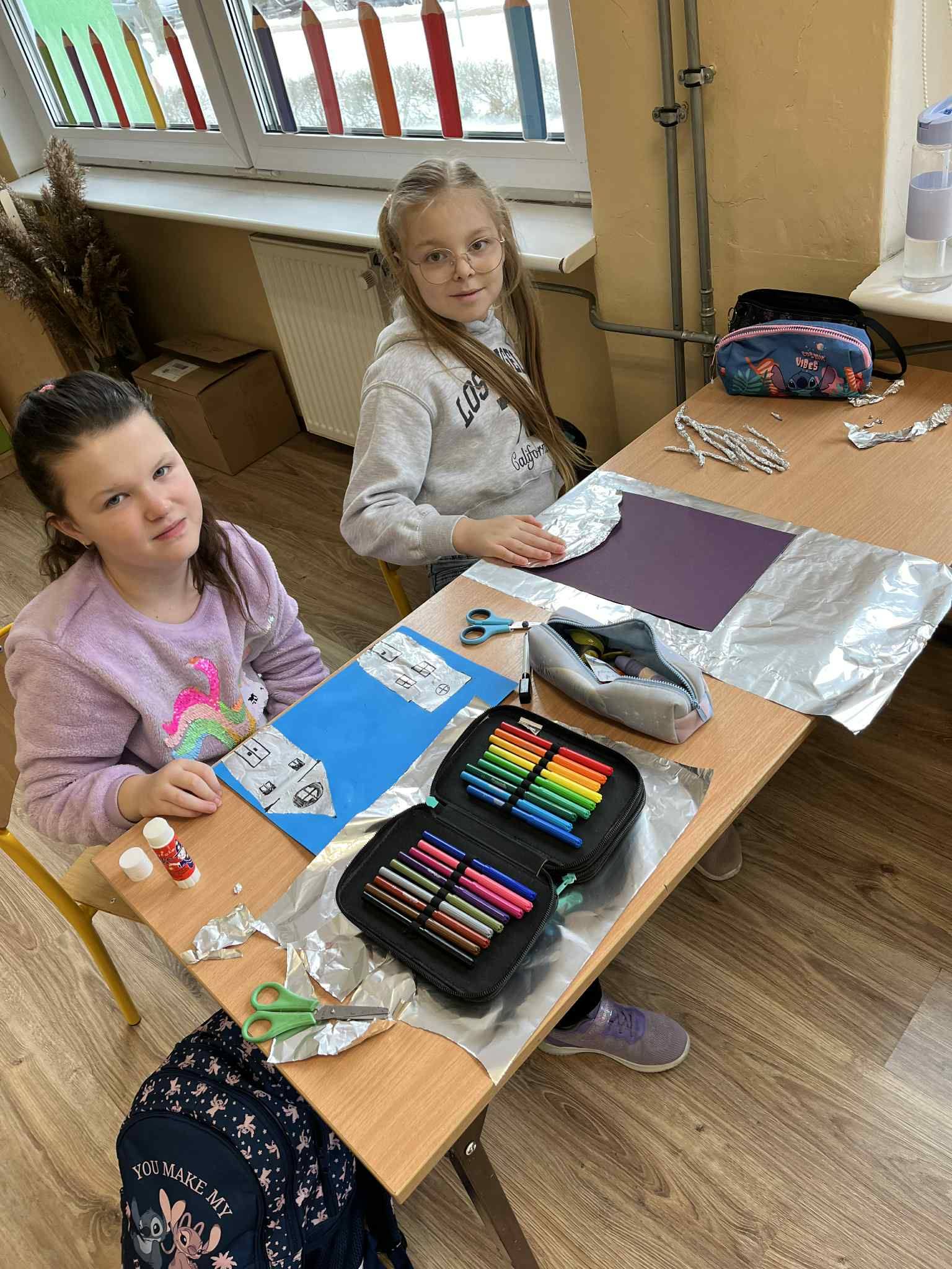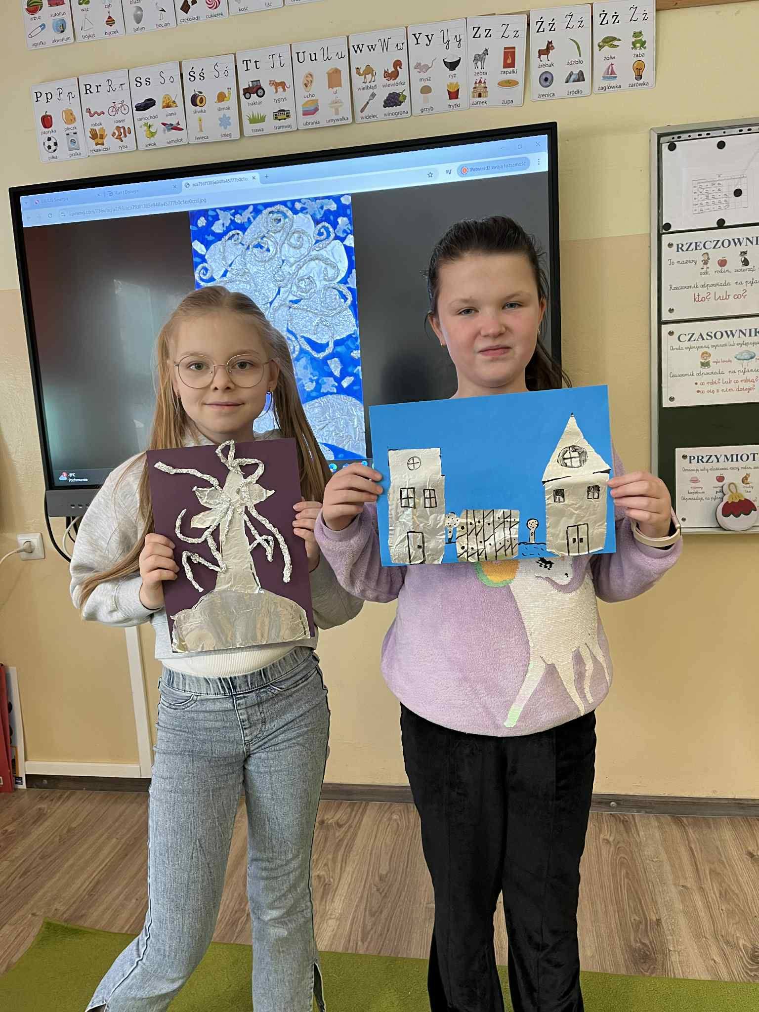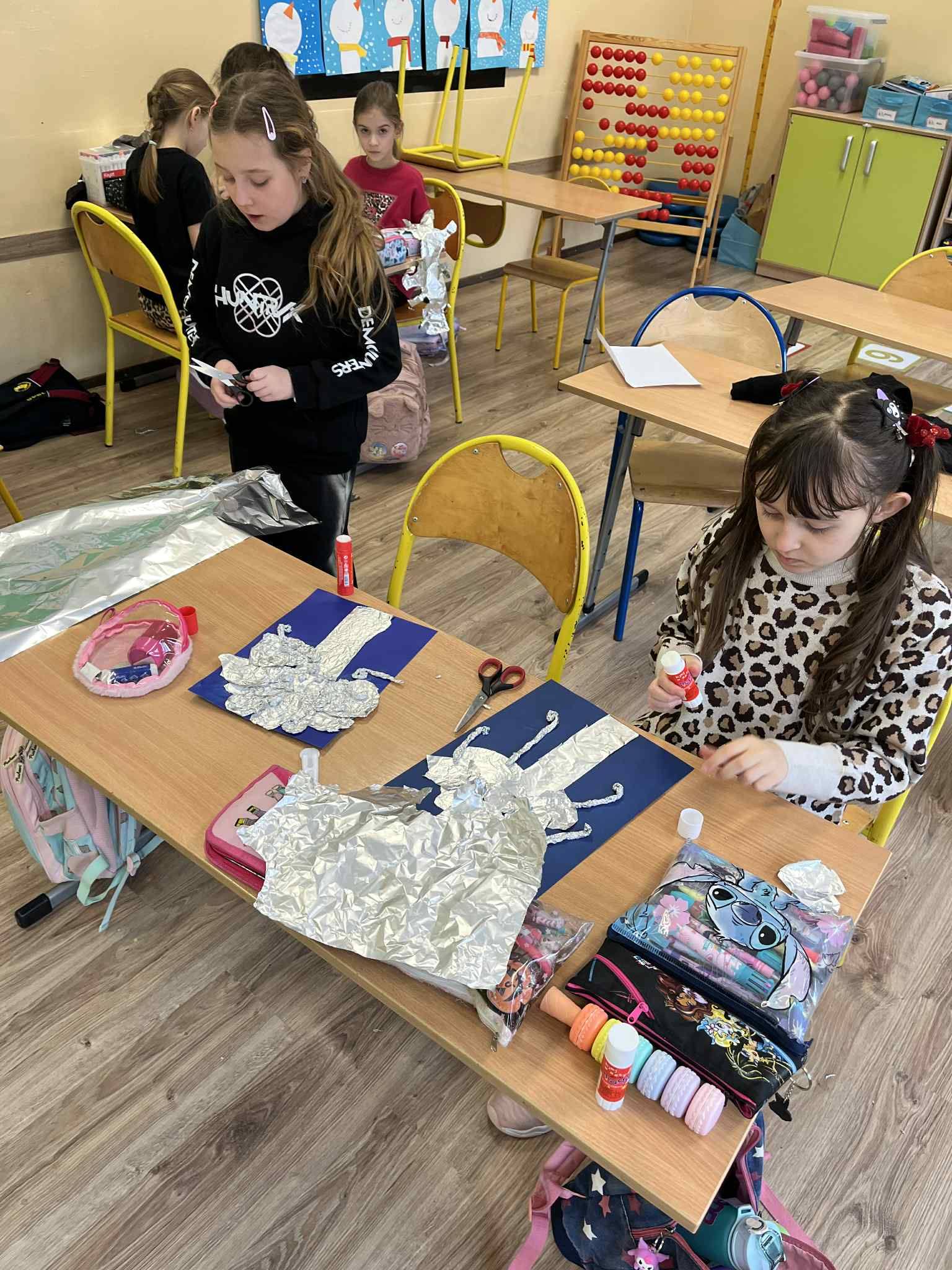 Tym razem dzieci z koła plastycznego wykonywały prace pod tytułem ZIMOWE MIASTO.