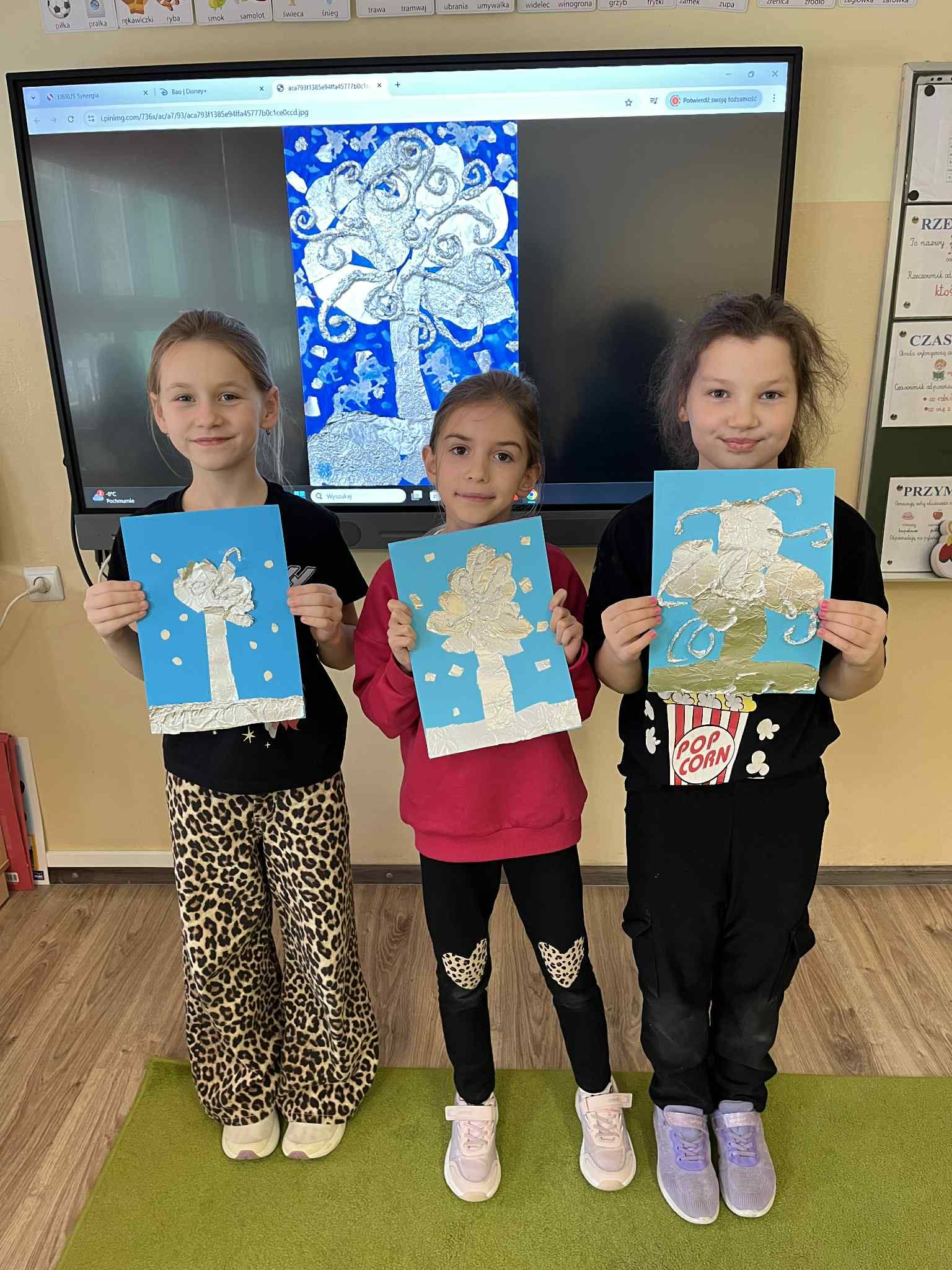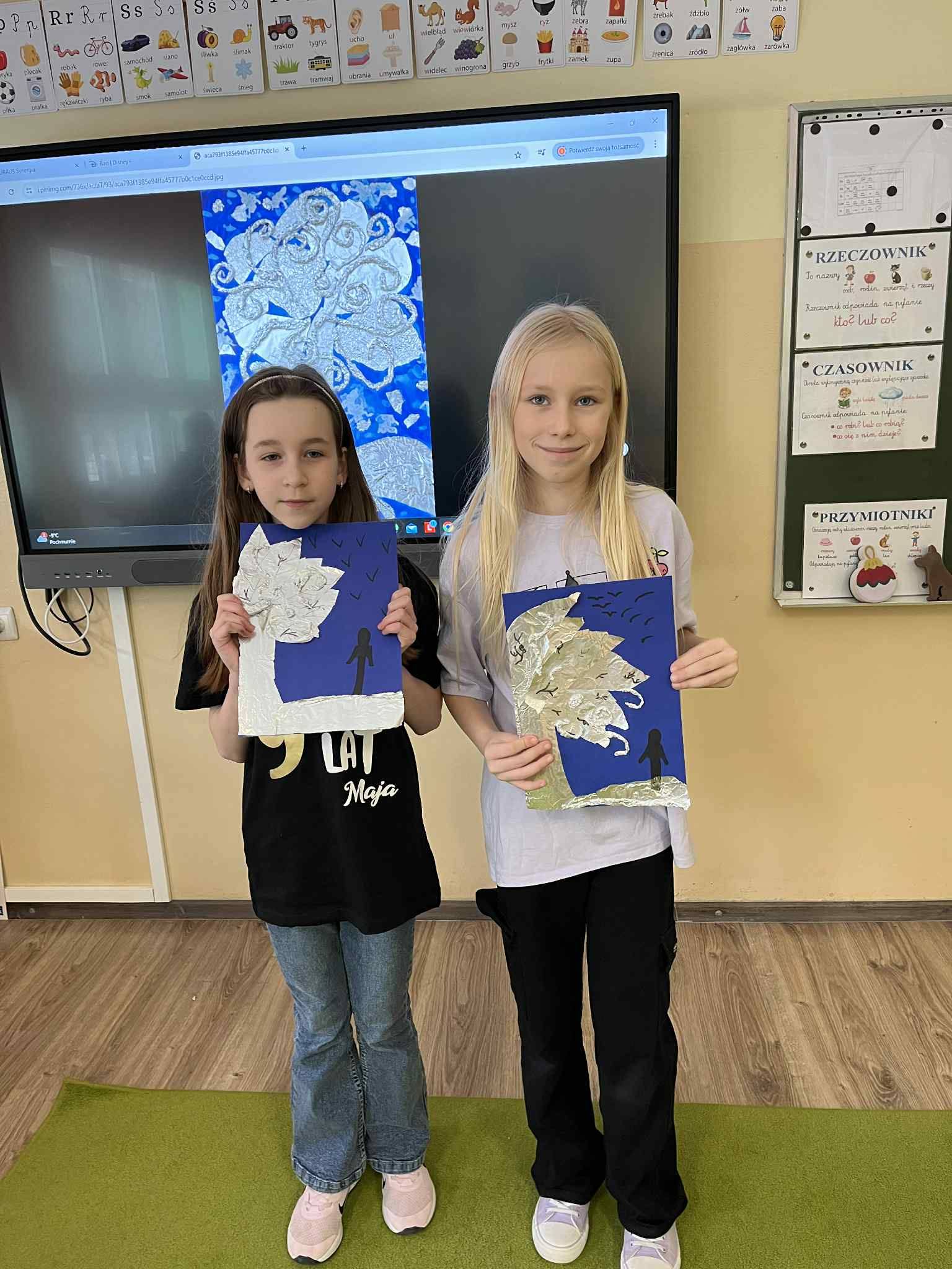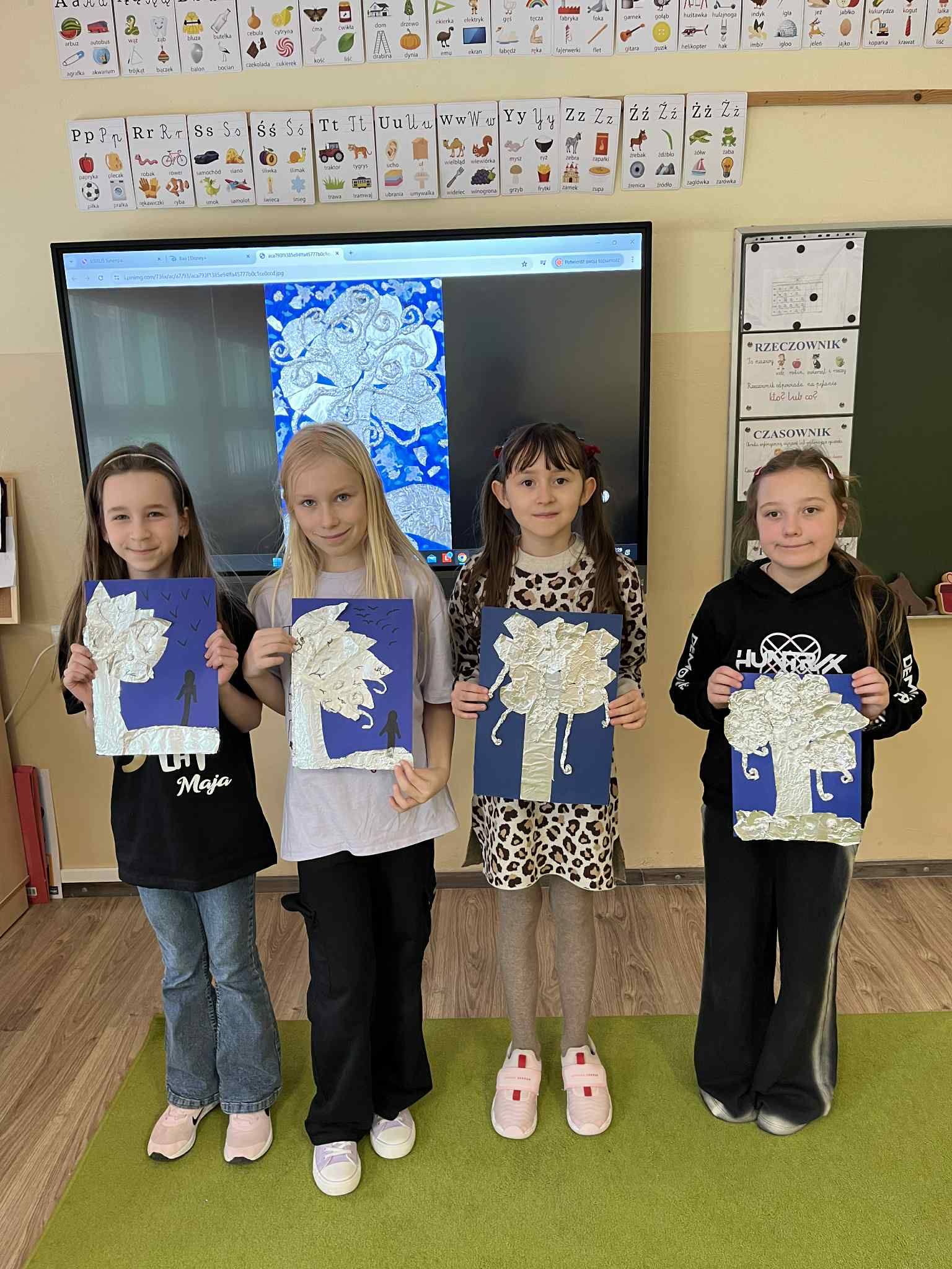 Tym razem dzieci z koła plastycznego wykonywały prace pod tytułem ZIMOWE MIASTO.