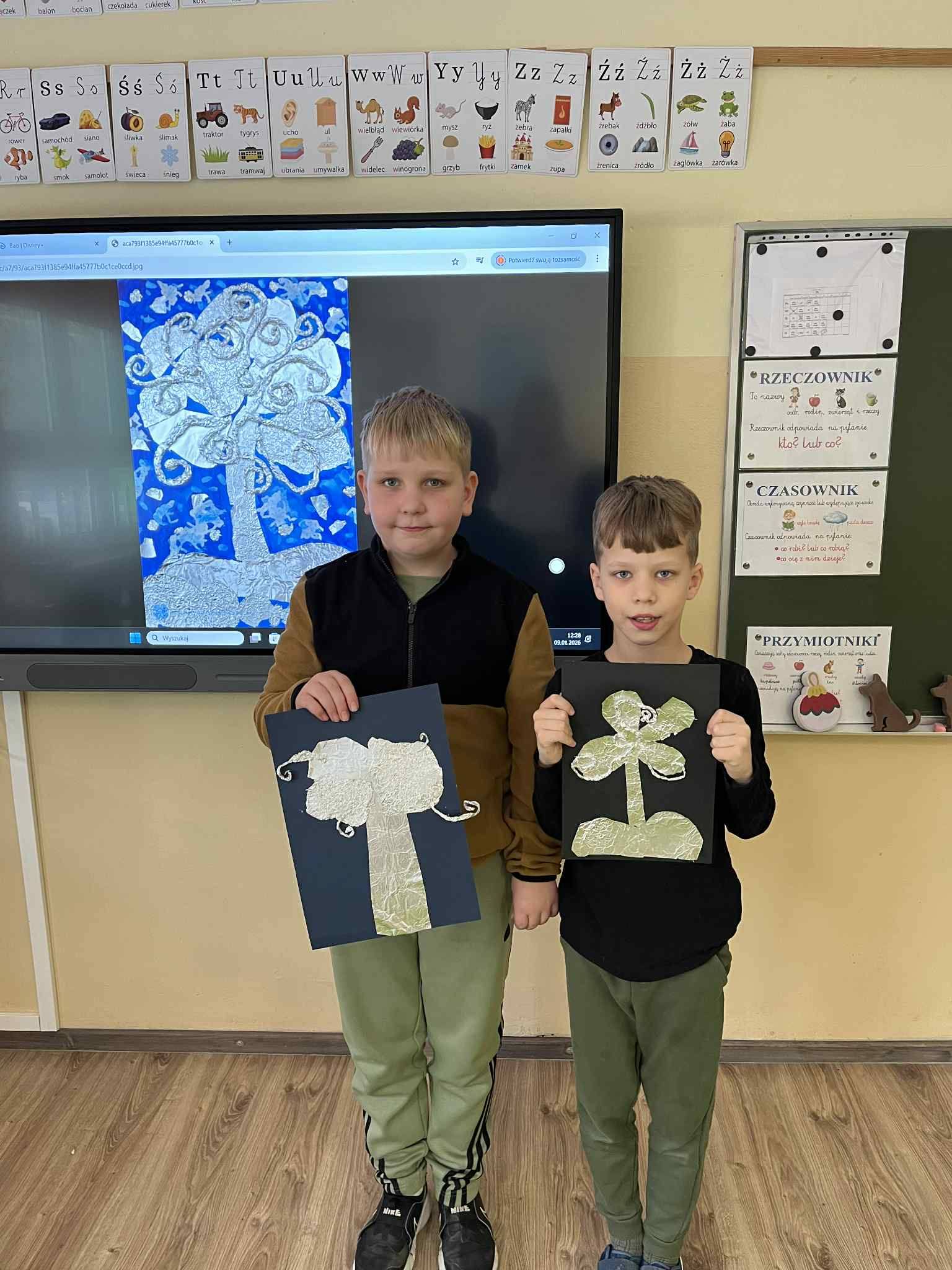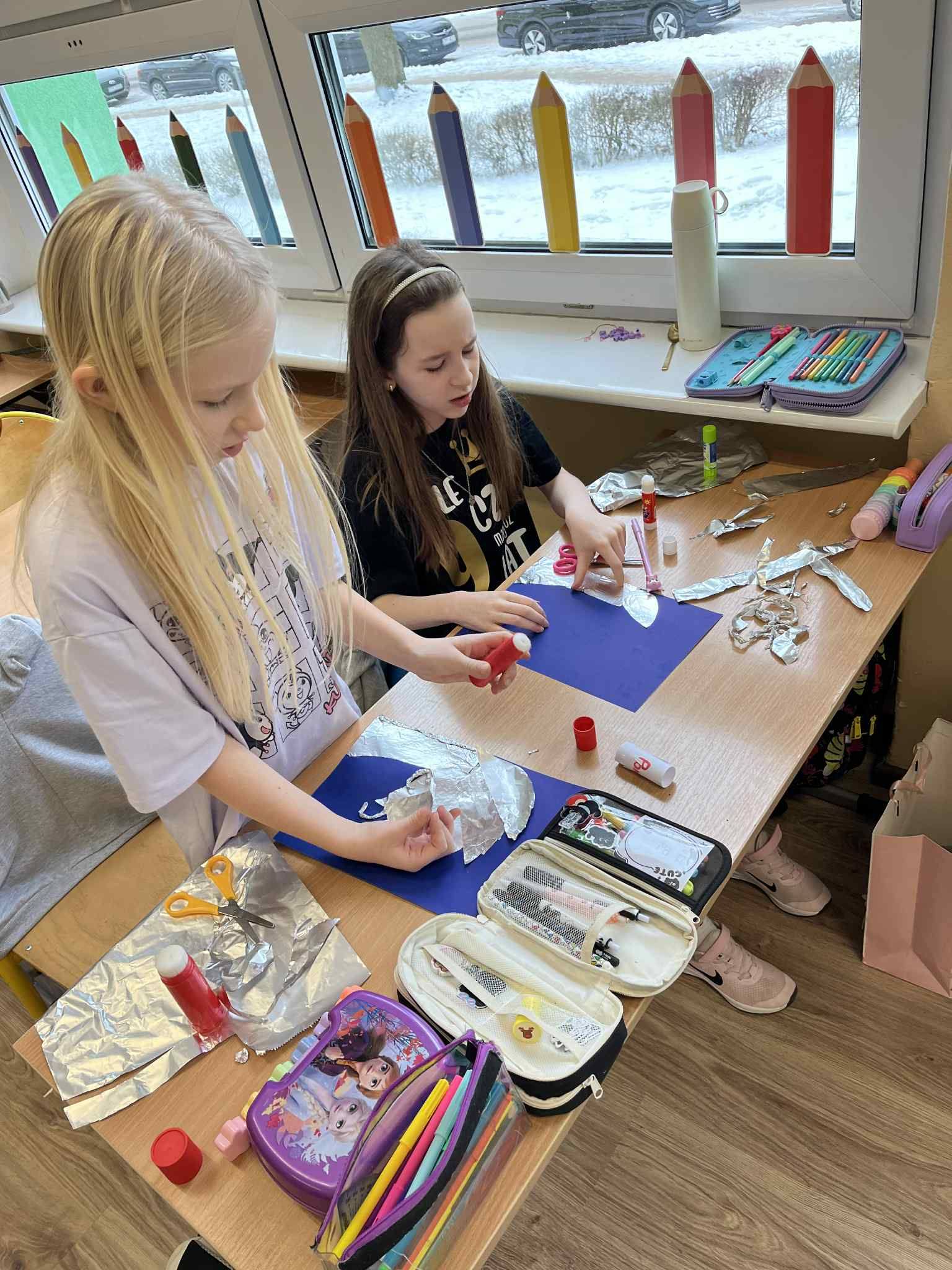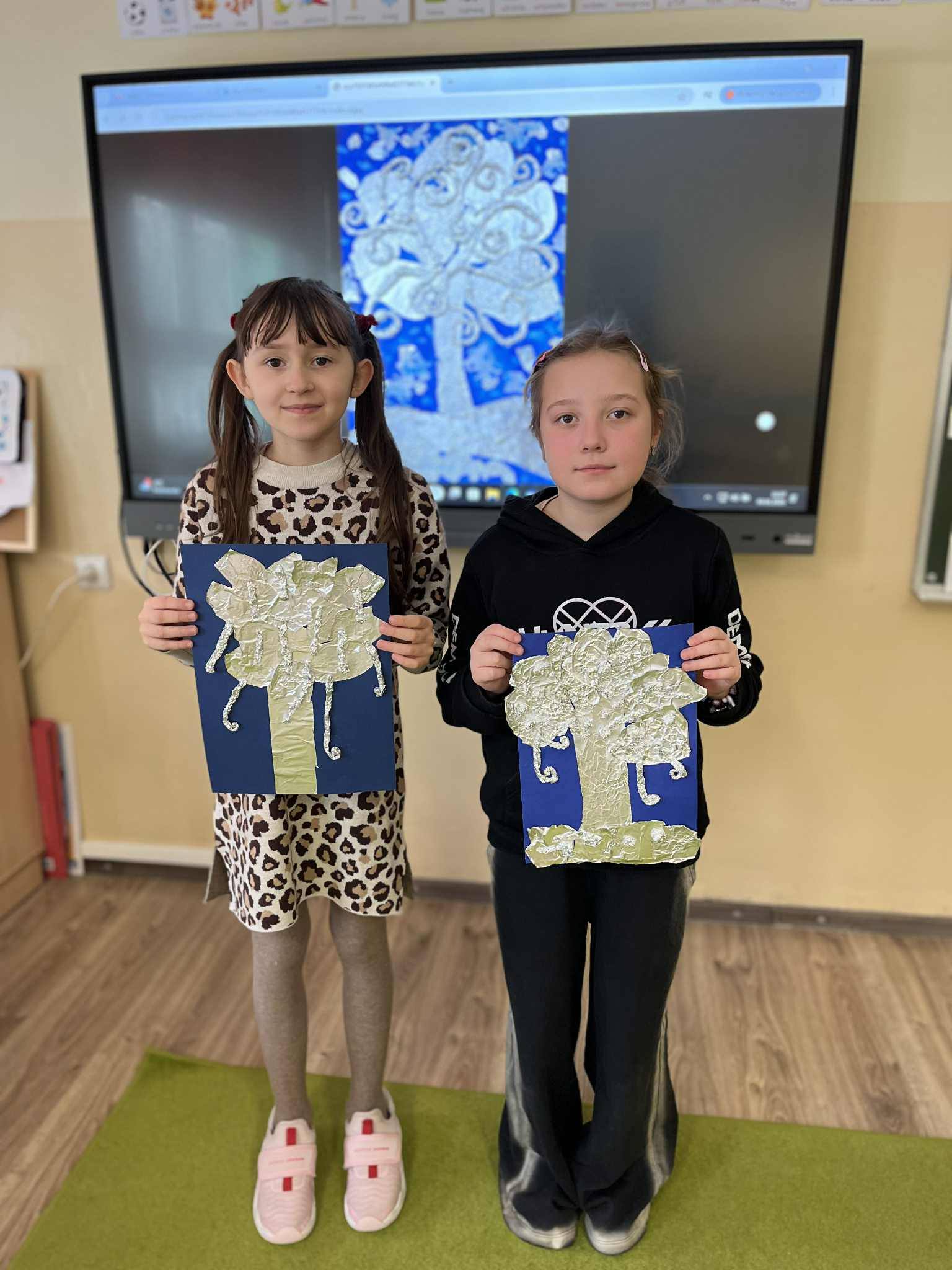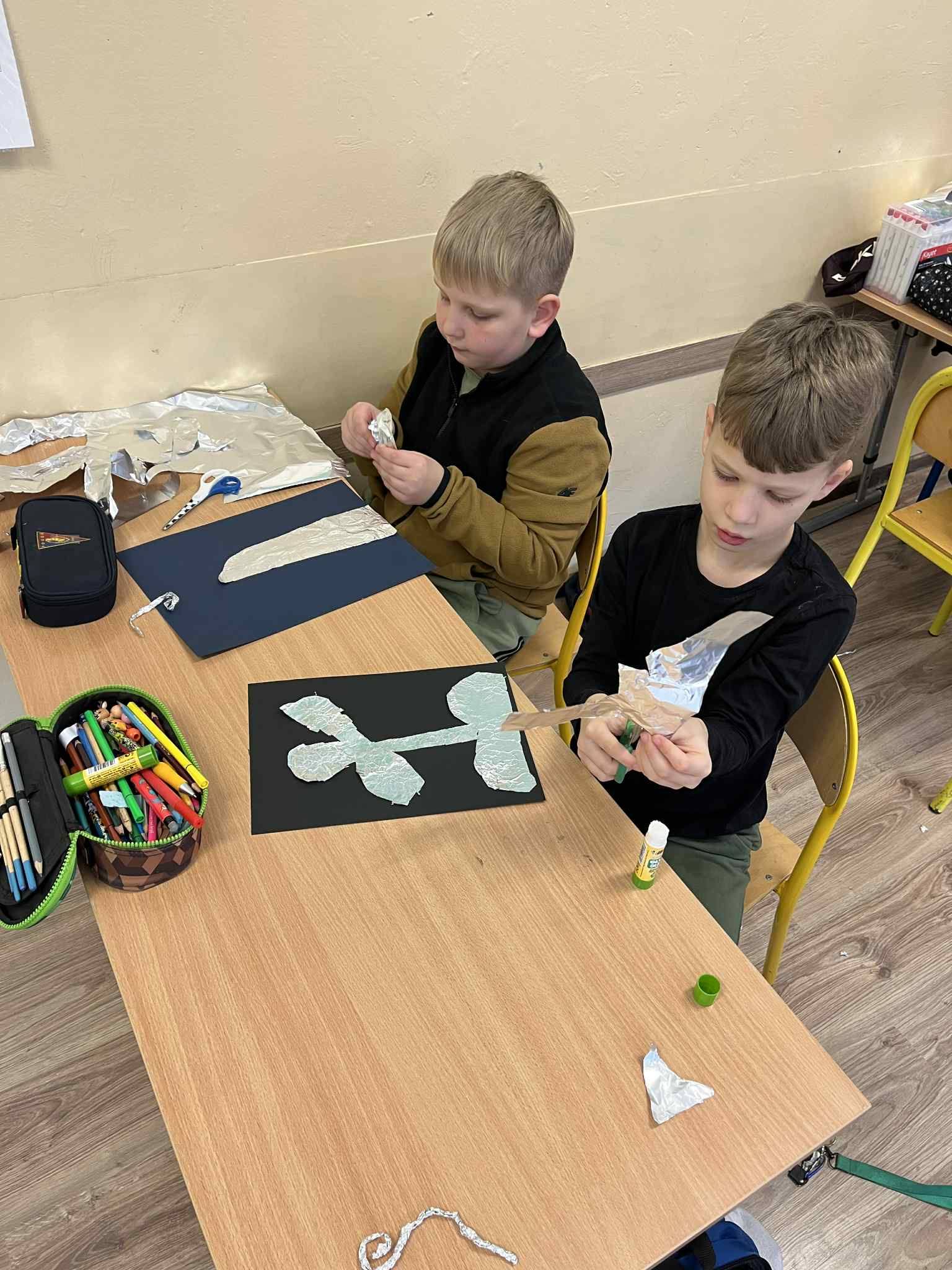 Tym razem dzieci z koła plastycznego wykonywały prace pod tytułem ZIMOWE MIASTO.