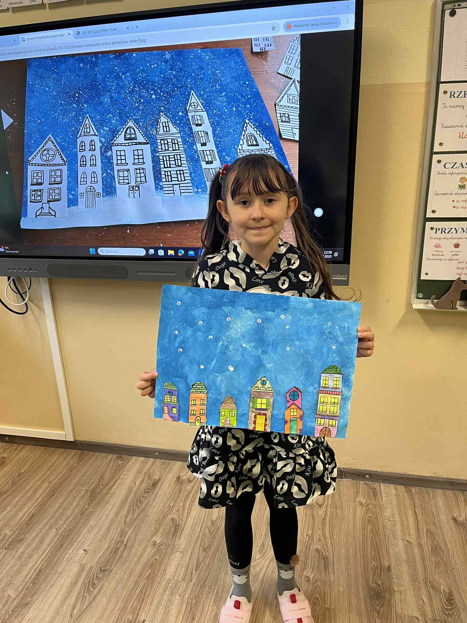 Zimowe miasto widziane nocą.