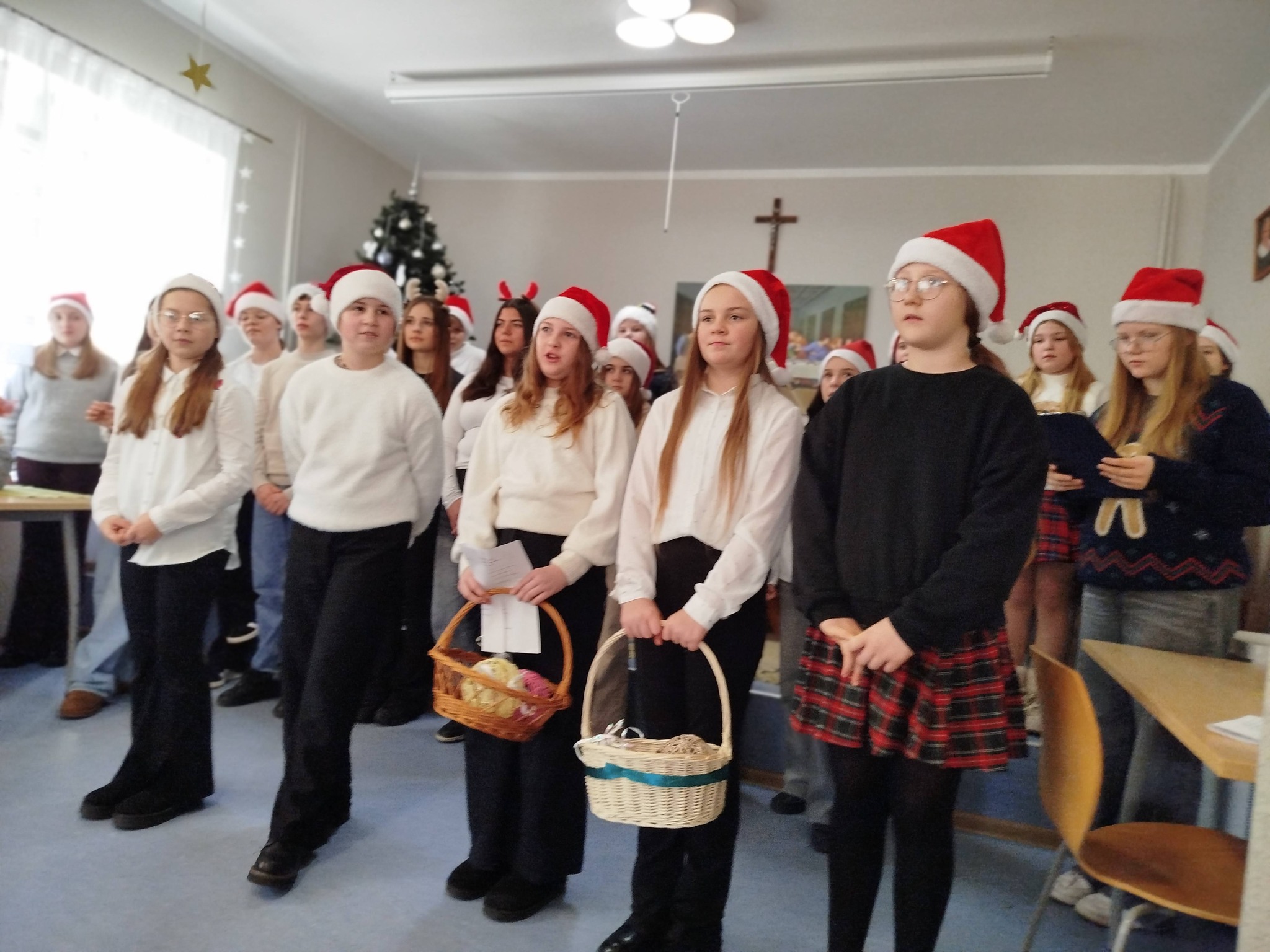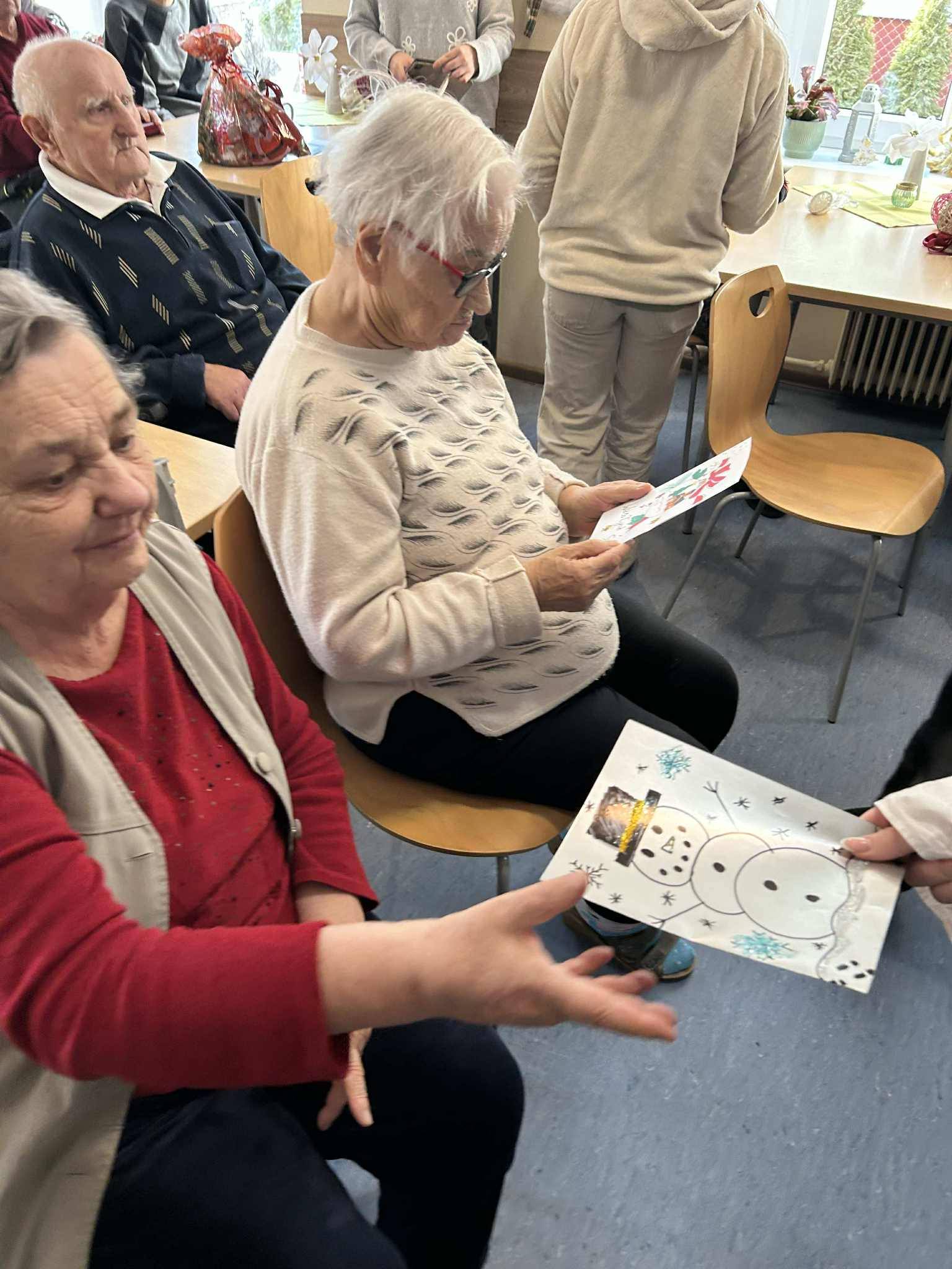 Na zakończenie wolontariusze wręczyli pensjonariuszom upominki i kartki świąteczne przygotowane przez uczniów wraz z nauczycielami , przekazując najserdeczniejsze życzenia zdrowia, spokoju i radości.