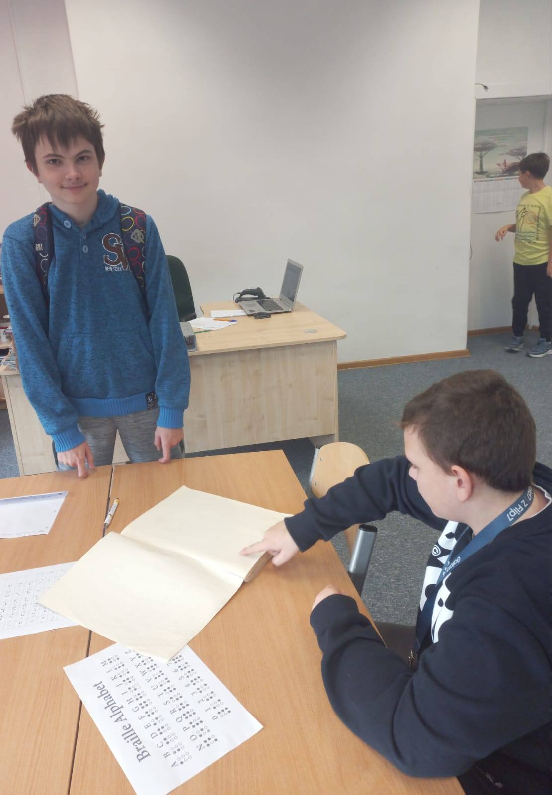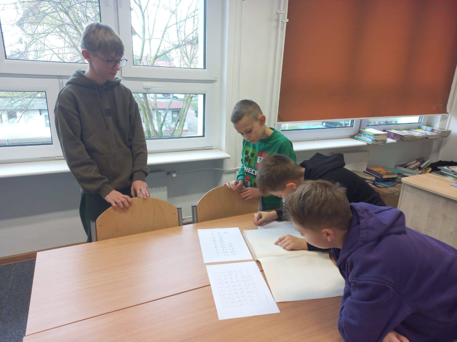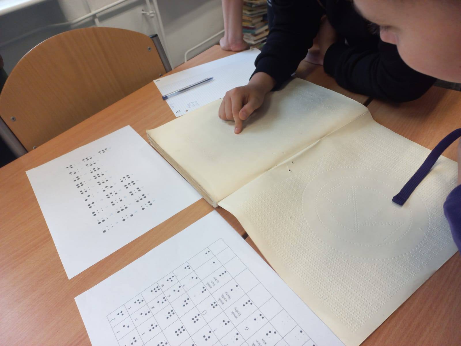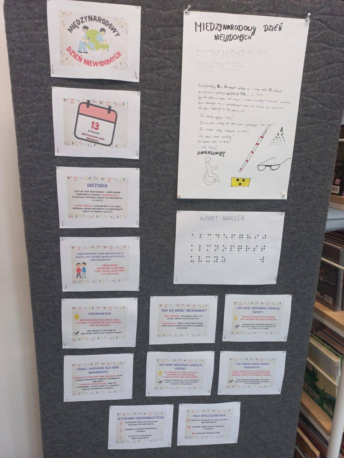 Z tej okazji w bibliotece szkolnej można było dowiedzieć się wielu rzeczy na temat funkcjonowania osób niewidomych. Można było również podjąć próbę odczytania tytułu książki pisanej alfabetem Braille'a.