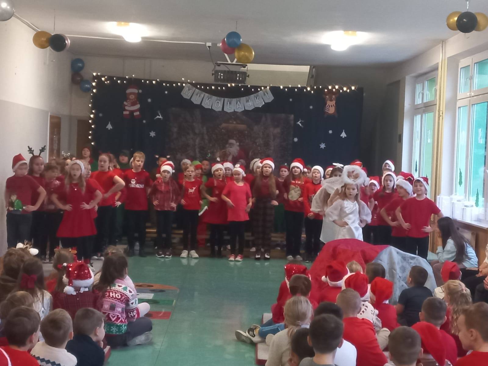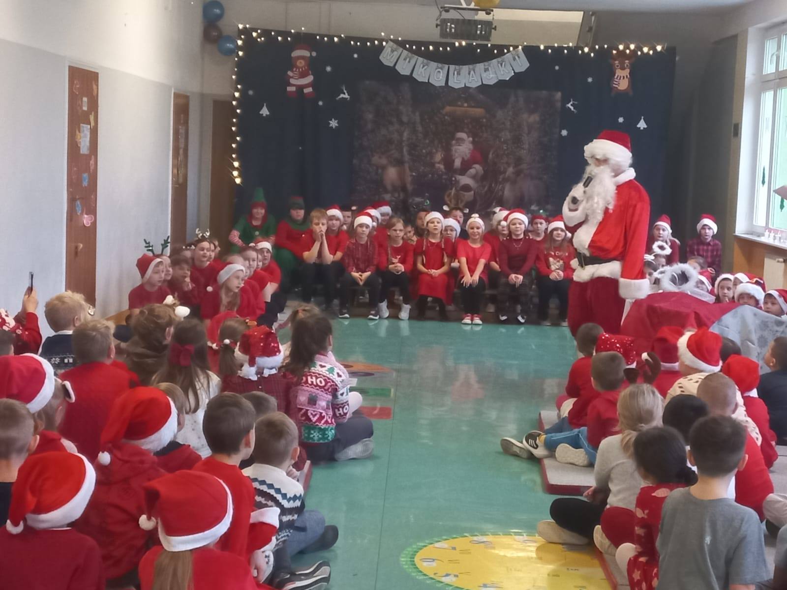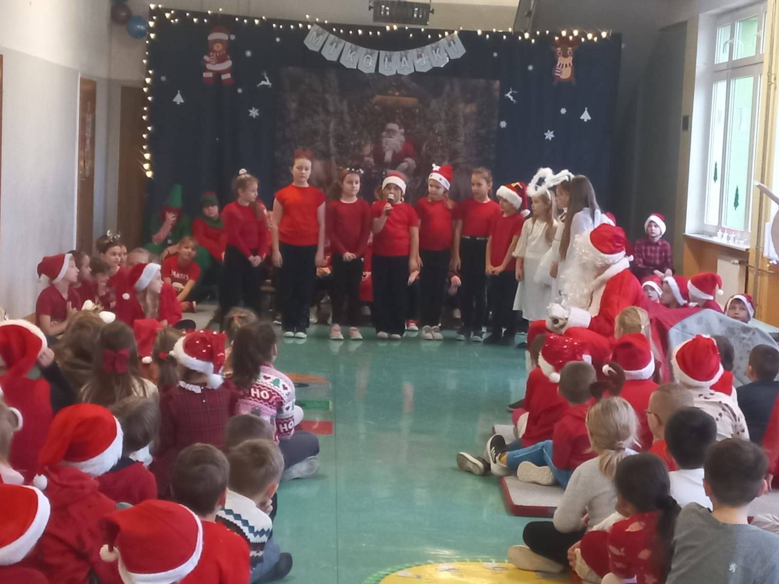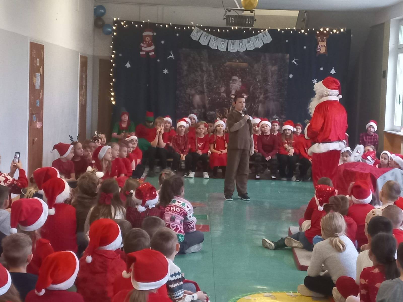 W piątek, 5 grudnia, klasy II i III naszej szkoły przygotowały wyjątkowe przedstawienie mikołajkowe! Mali aktorzy wspaniale wcielili się w role Świętego Mikołaja, jego pomocników oraz magicznych postaci zimowej opowieści.