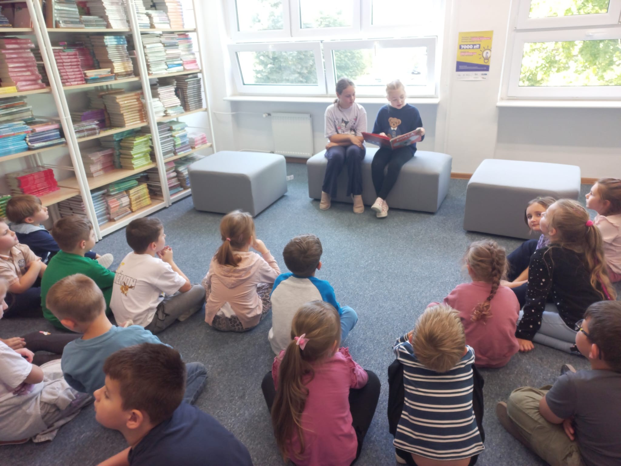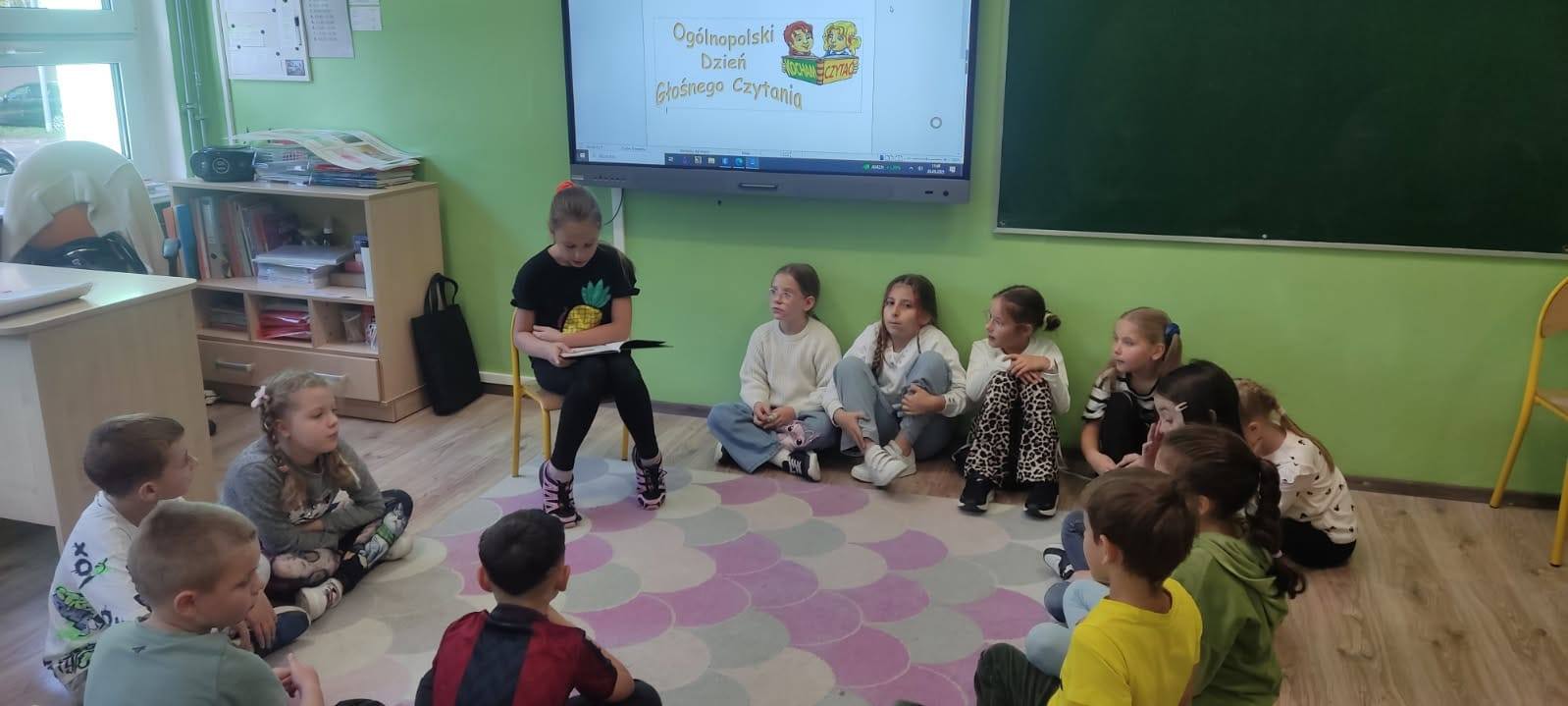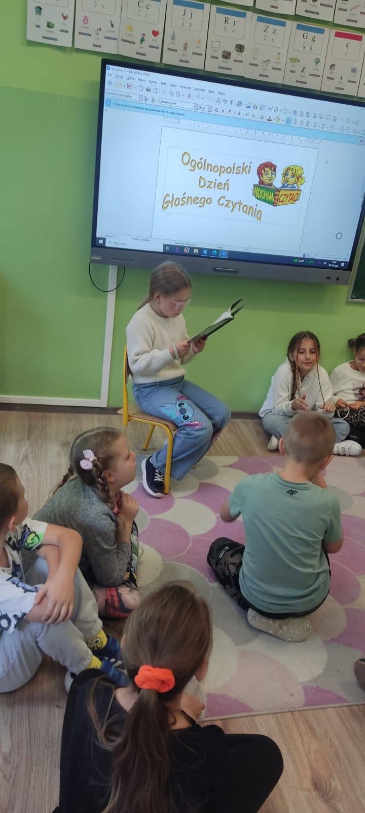 Dnia 29.09.2025 r. obchodziliśmy Ogólnopolski Dzień Głośnego Czytania. Cele święta to m.in. promocja czytelnictwa, rozwijanie wyobraźni i kształtowanie nawyku uważnego słuchania. Chętni trzecioklasiści przeczytali swoim młodszym kolegom z klas pierwszych i zerówki, opowieść o odwadze i przyjaźni. Najmłodsi uczniowie z uwagą słuchali i odpowiadali na pytania. W klasie 2c każdy wcielił się w rolę czytającego. To było ciekawe doświadczenie. W przyszłym roku z pewnością je powtórzymy.