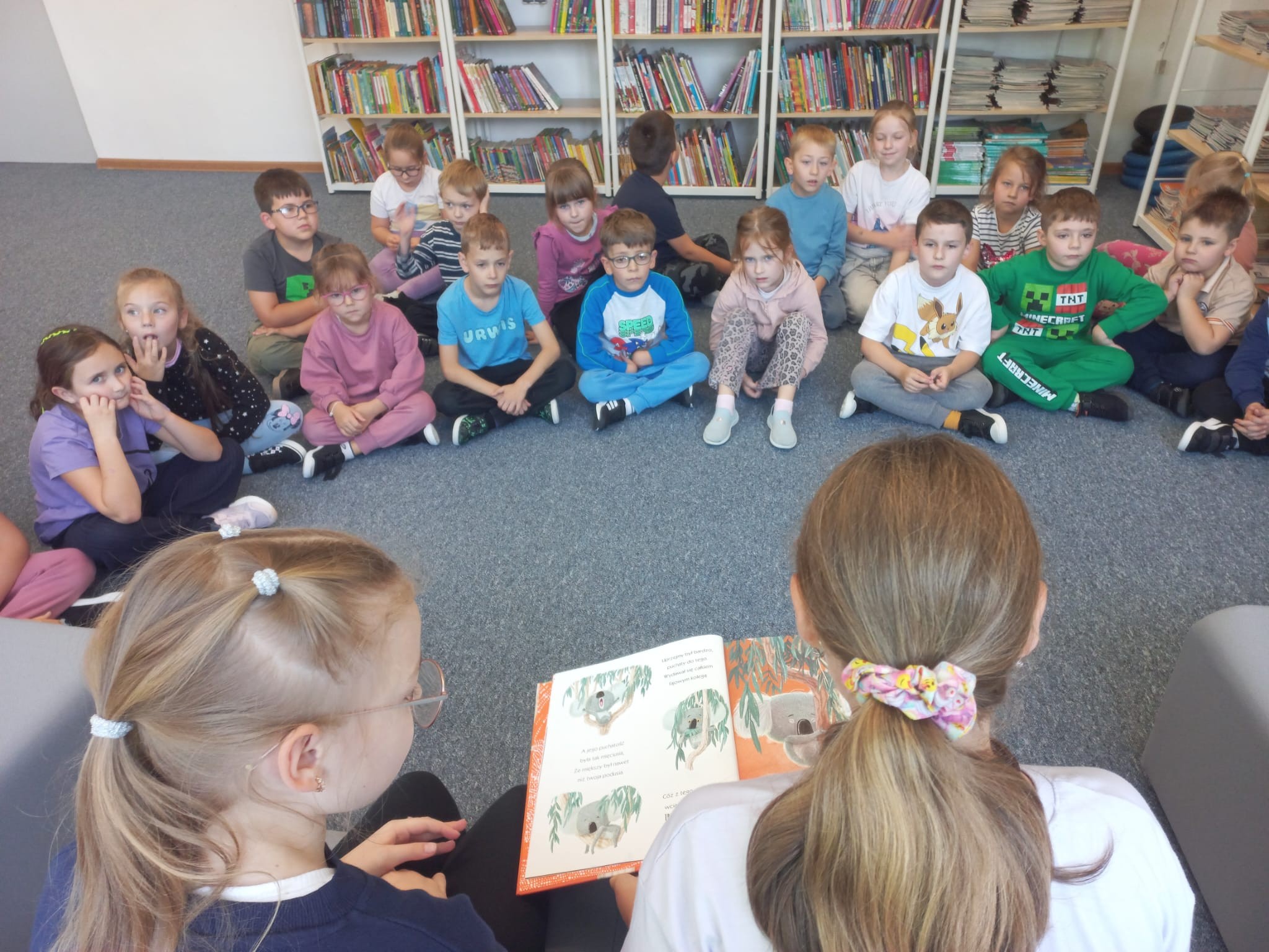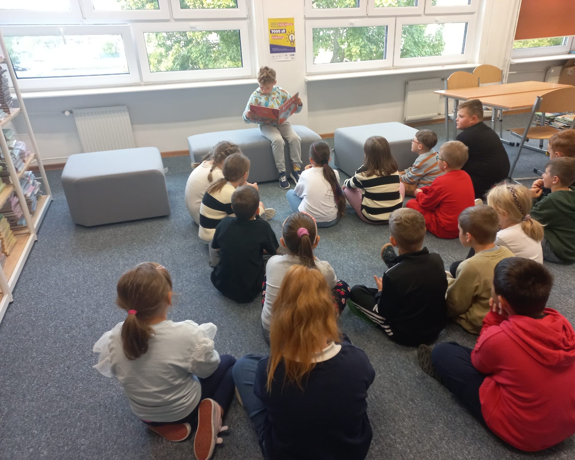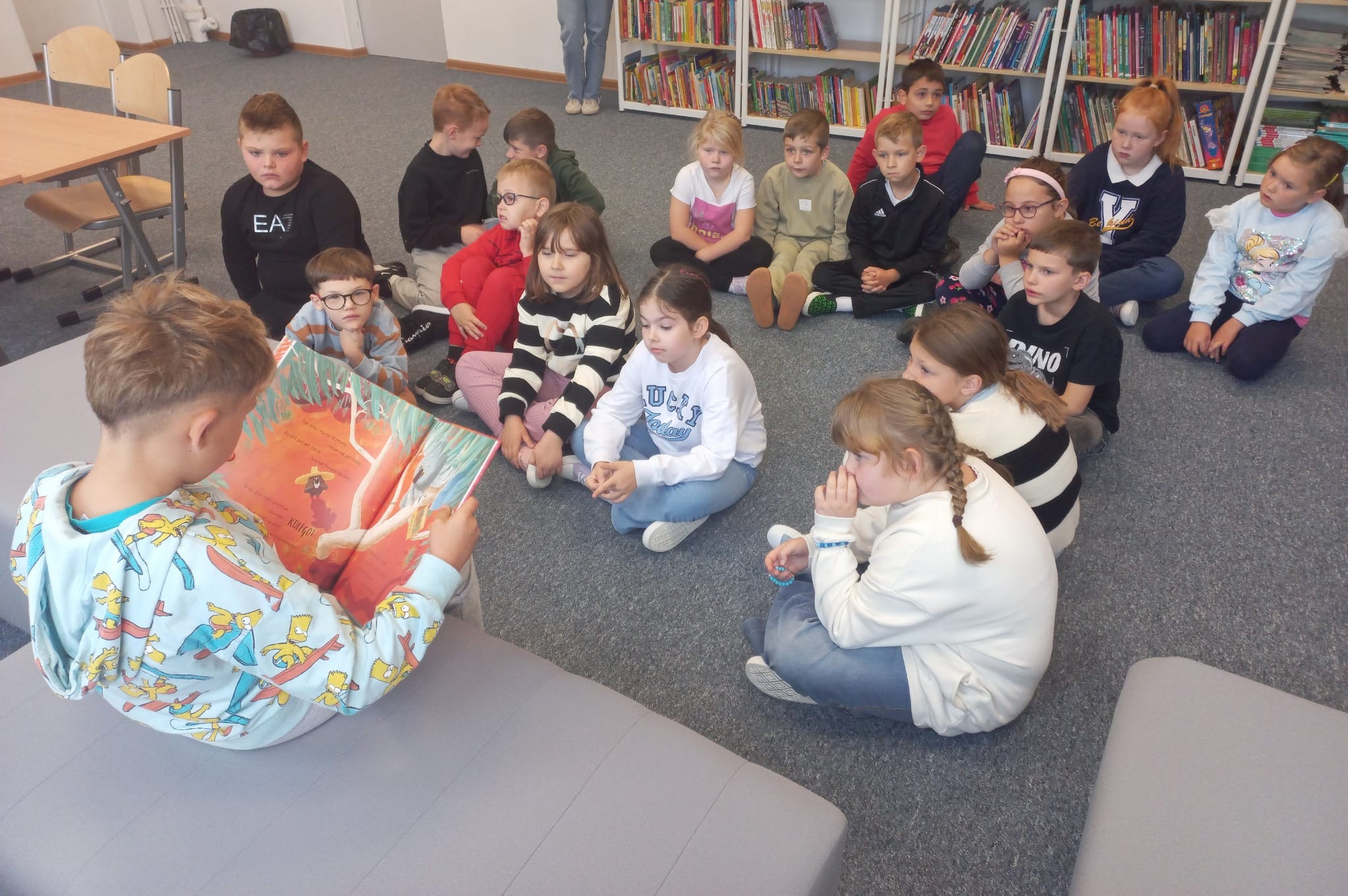 Dnia 29.09.2025 r. obchodziliśmy Ogólnopolski Dzień Głośnego Czytania. Cele święta to m.in. promocja czytelnictwa, rozwijanie wyobraźni i kształtowanie nawyku uważnego słuchania. Chętni trzecioklasiści przeczytali swoim młodszym kolegom z klas pierwszych i zerówki, opowieść o odwadze i przyjaźni. Najmłodsi uczniowie z uwagą słuchali i odpowiadali na pytania. W klasie 2c każdy wcielił się w rolę czytającego. To było ciekawe doświadczenie. W przyszłym roku z pewnością je powtórzymy.