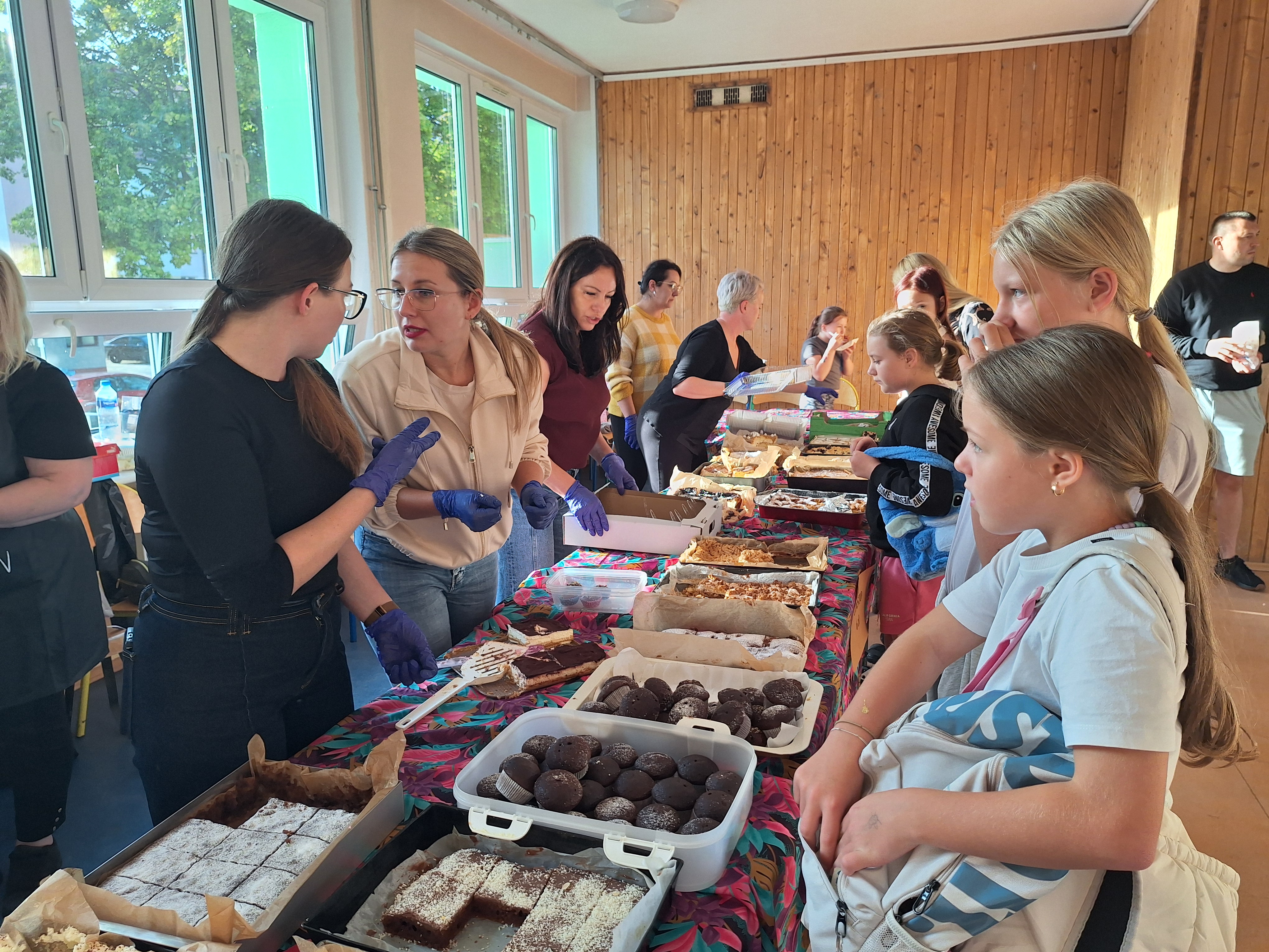Na uczestników Festynu czekały przepyszne ciasta, sałatki, pierogi, lemoniada, hot-dogi, gofry, wata cukrowa, popcorn oraz pieczone kiełbaski z grilla.
