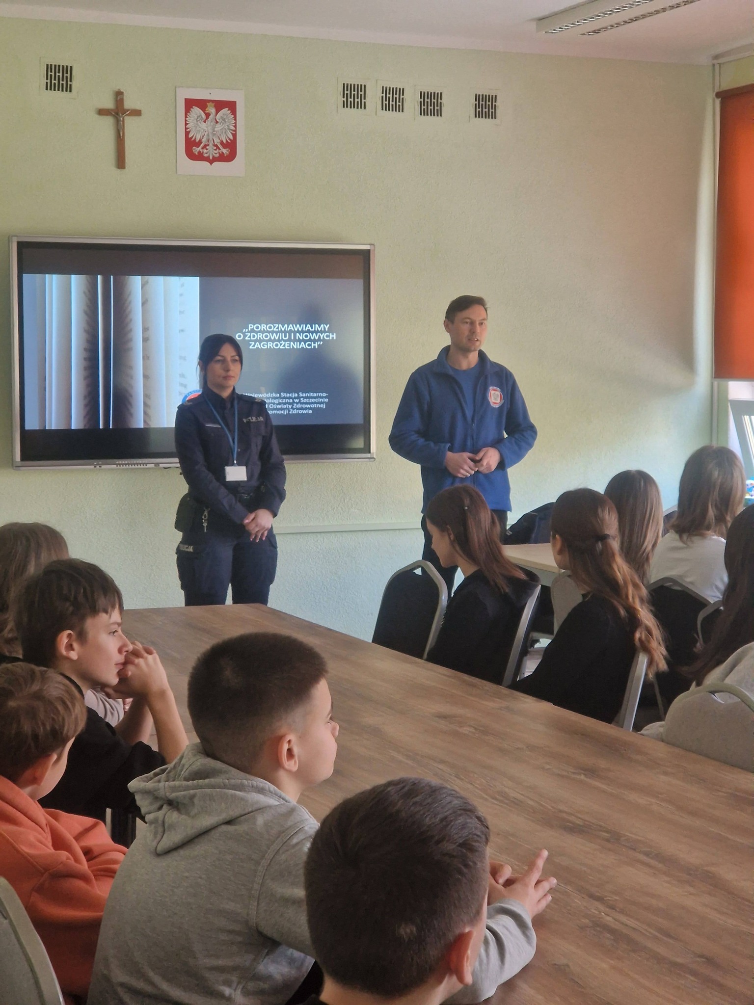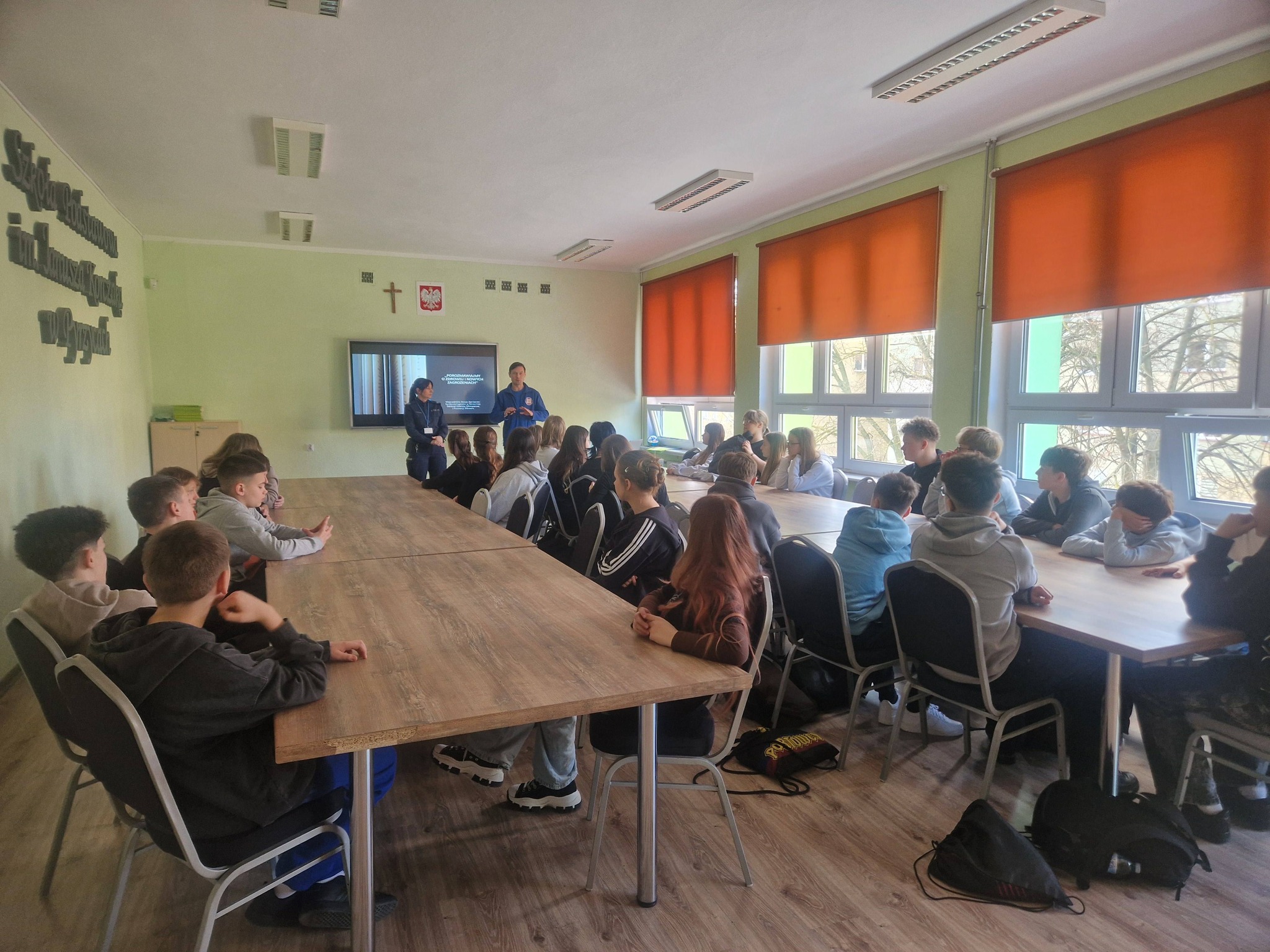 17.03.2026r. uczniowie klas siódmych uczestniczyli w spotkaniu profilaktycznych w ramach programu "Porozmawiajmy o zdrowiu i innych zagrożeniach".