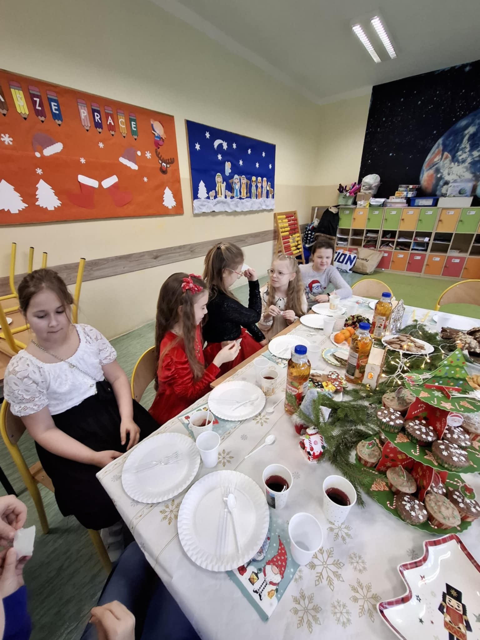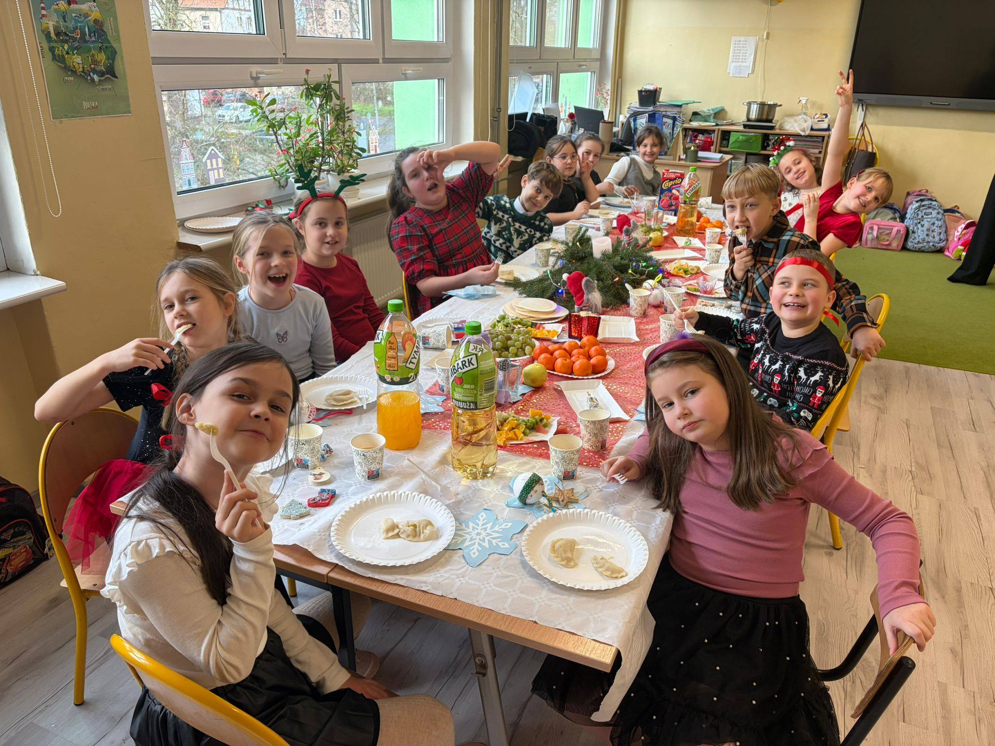 kolędy, śmiech i wspólne wigilijne chwile wprowadziły dzieci w magiczny nastrój Świąt; był to dzień pełen radości, serdeczności i świątecznej atmosfery