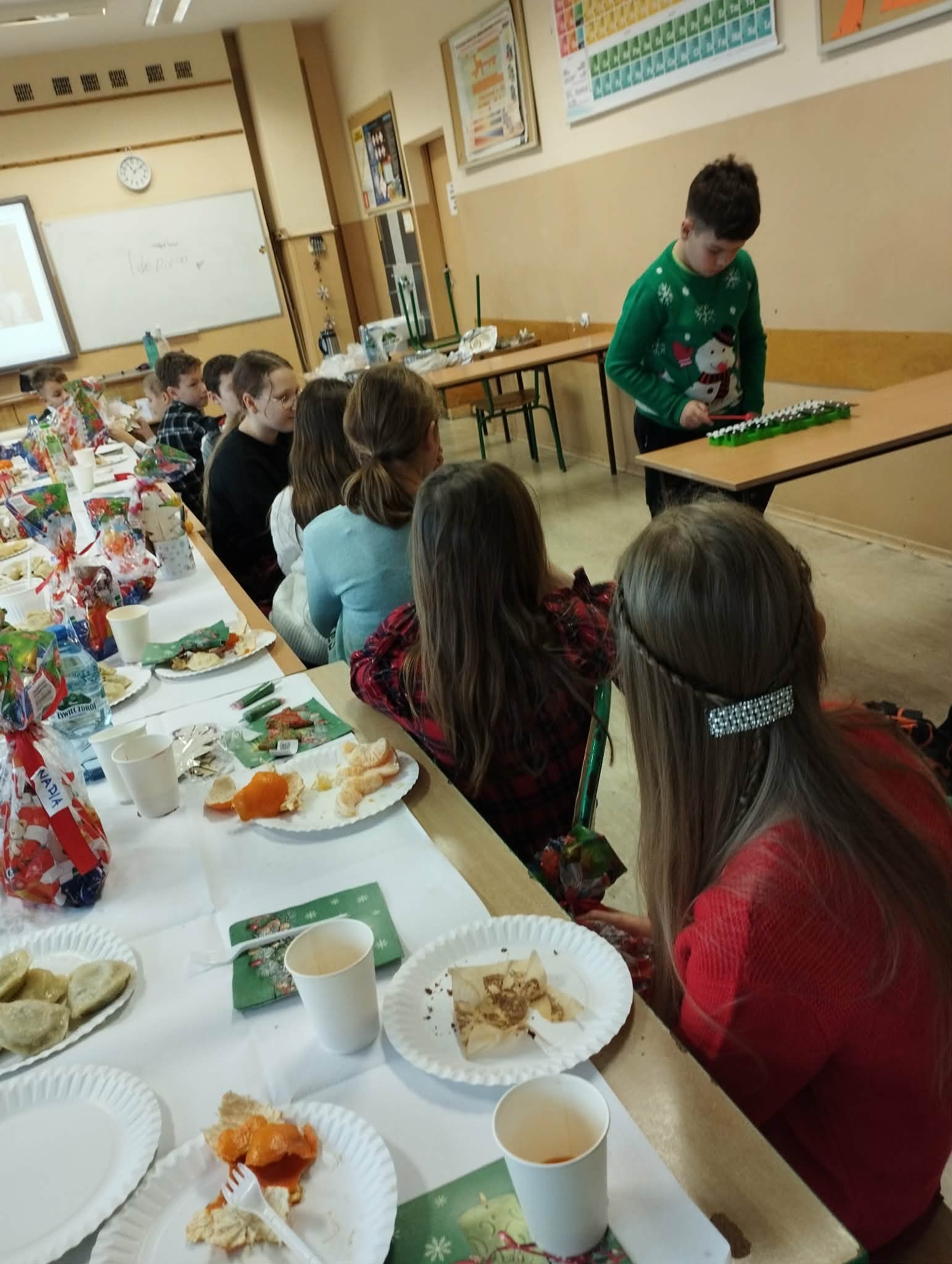 Na ten dzień wszyscy niecierpliwie czekaliśmy od początku grudnia. Pachniało barszczem, mandarynkami i pierniczkami, na stole stało mnóstwo pyszności (serdeczne podziękowania dla Rodziców!), pod choinką piętrzyły się prezenty... Podzieliliśmy się opłatkiem, złożyliśmy sobie życzenia, kolędowaliśmy wspólnie z naszymi zdolnymi muzykami. Miło spędziliśmy czas w cudownej świątecznej atmosferze i wszystkim Wam życzymy WESOŁYCH ŚWIĄT