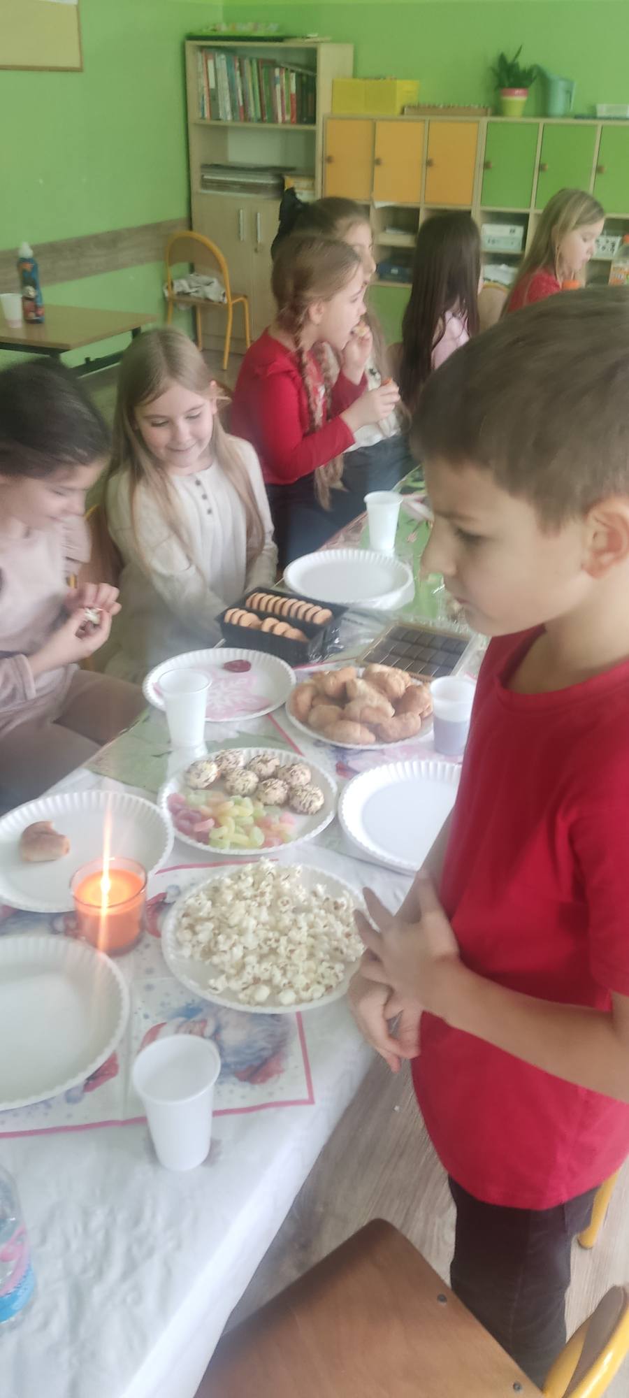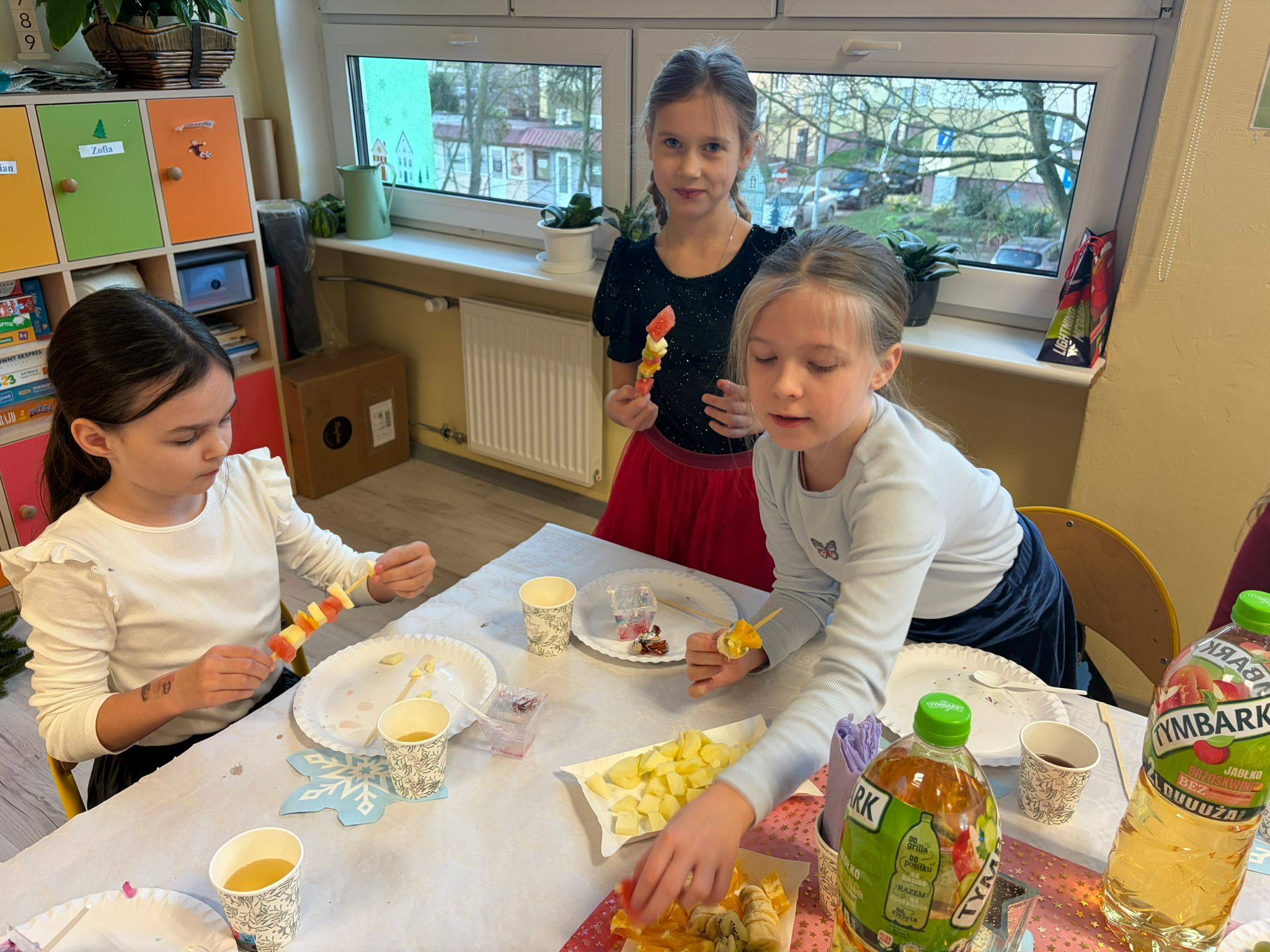 dzięki ogromnemu wsparciu ze strony rodziców uczniów, mogliśmy wspaniale spędzić ostatni dzień szkoły w tym roku kalendarzowym; przygotowaliśmy wspólnie ozdoby świąteczne, zdrowe, owocowe szaszłyczki oraz zjedliśmy pierożki