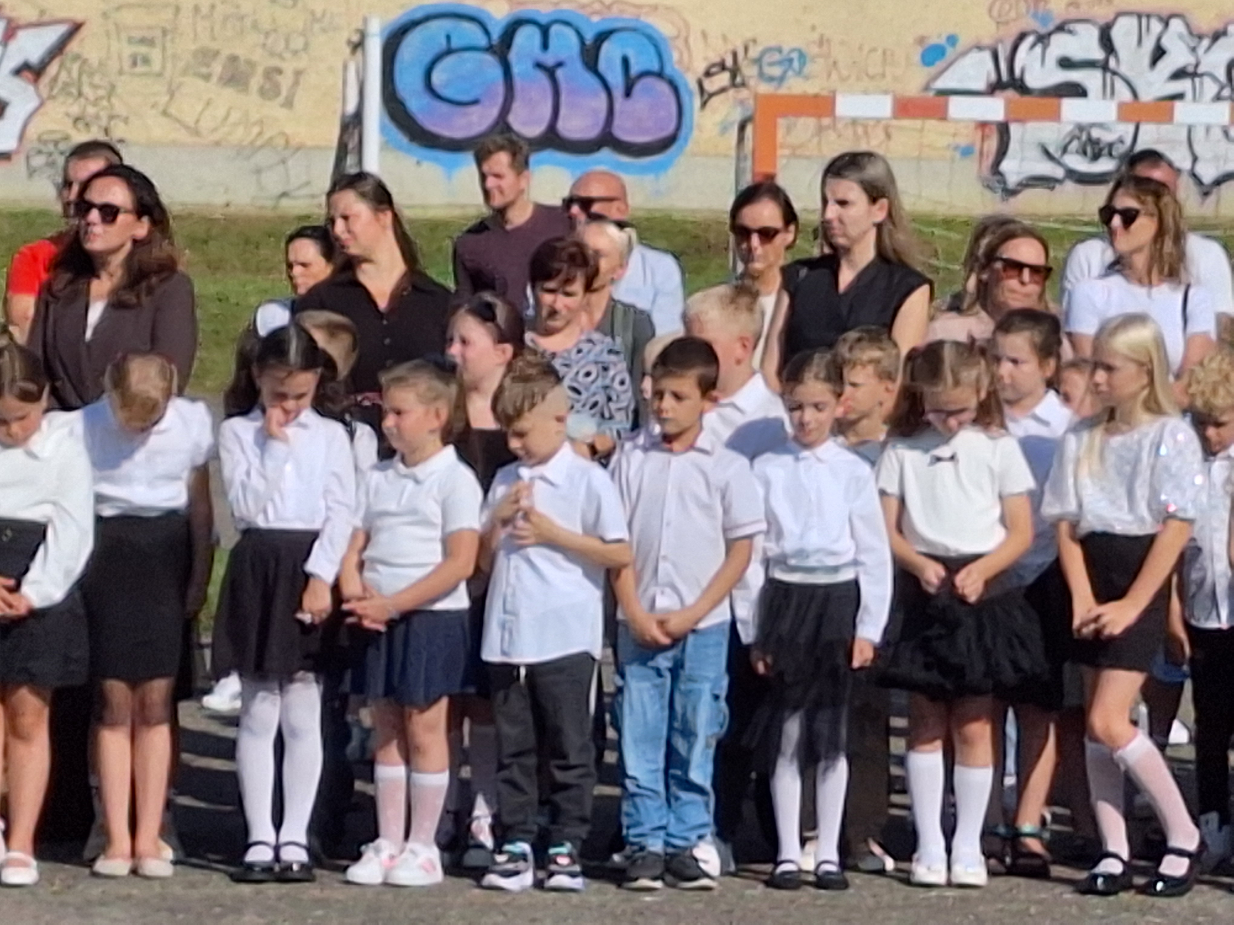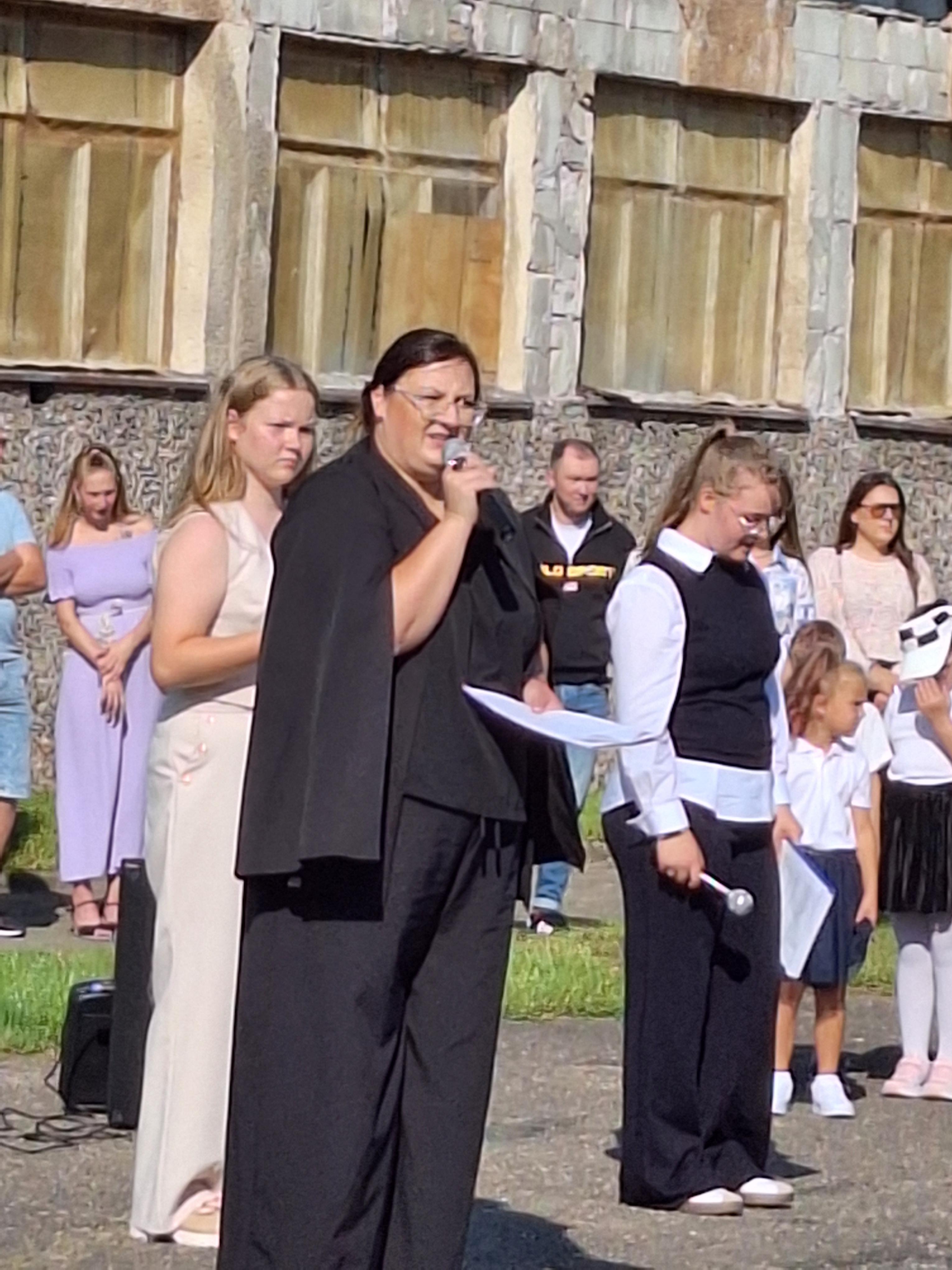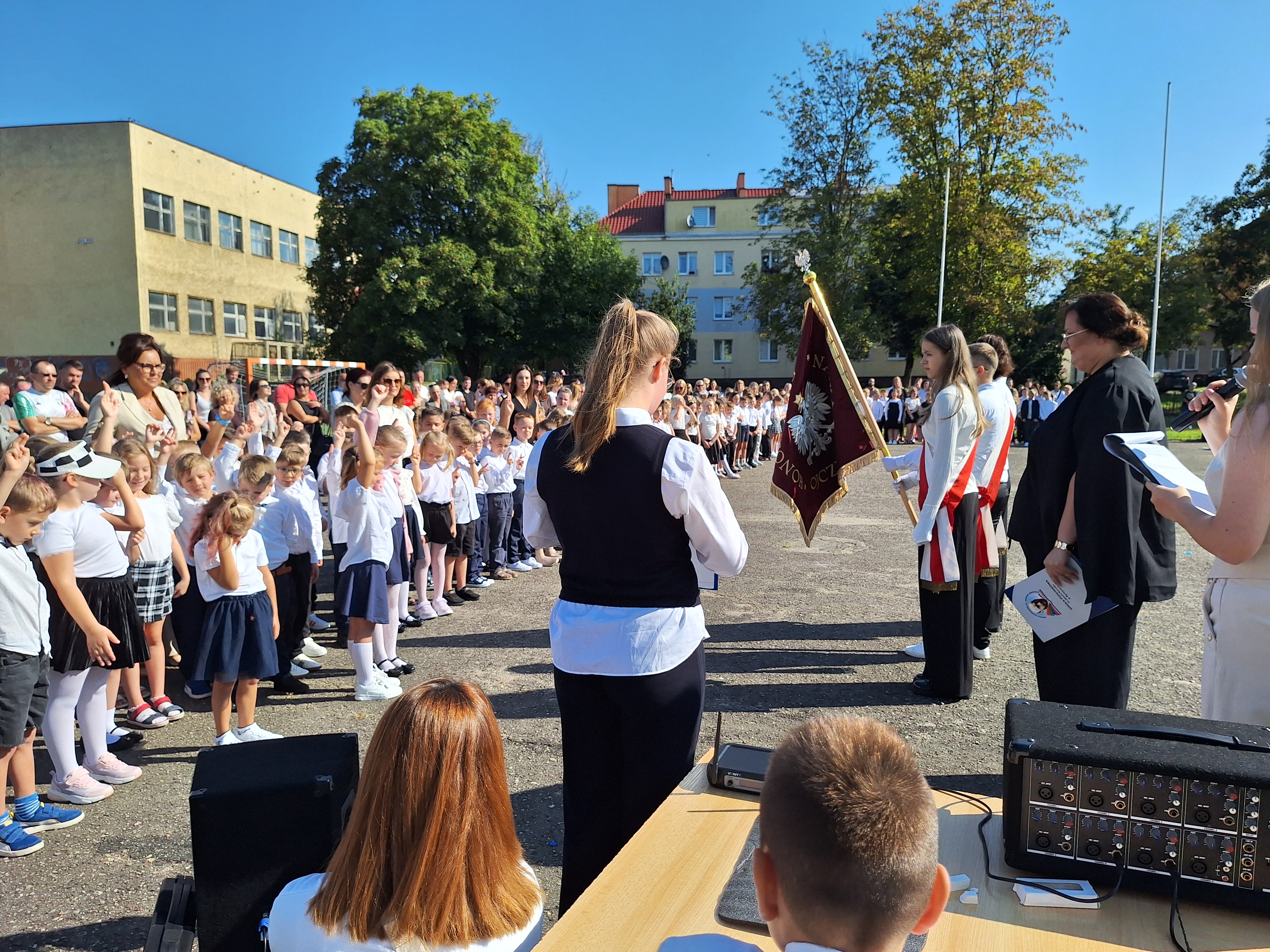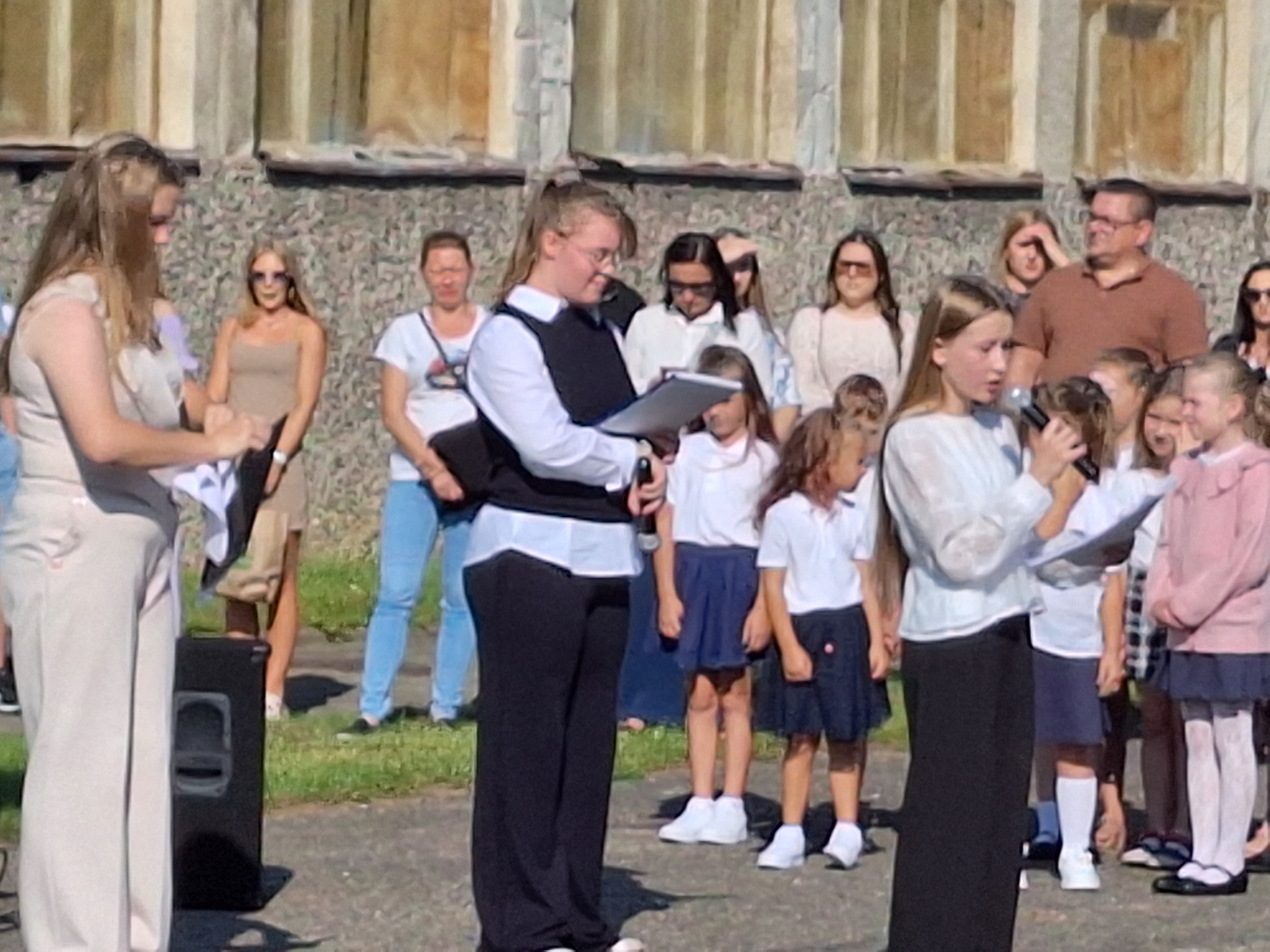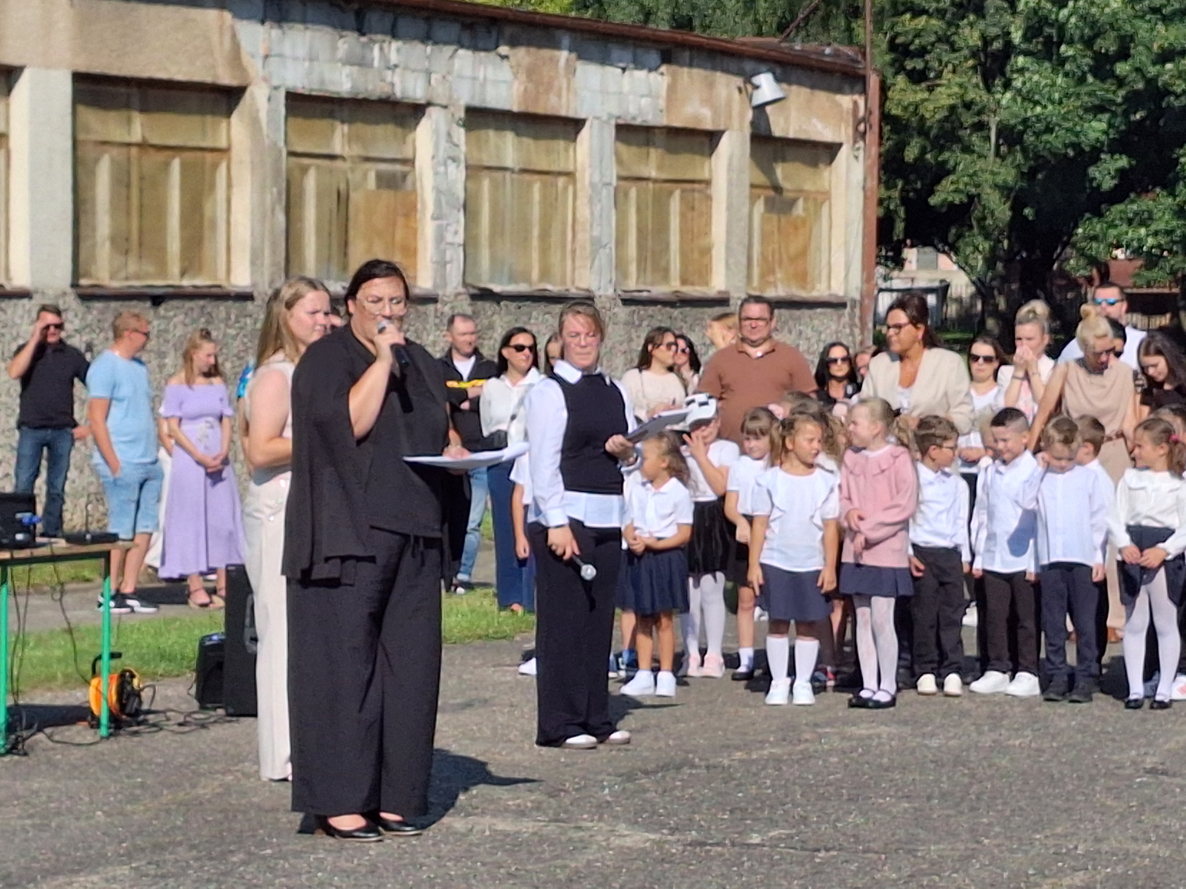 Dyrektor szkoły, Pani Marta Dolna, odebrała ślubowanie od uczniów klas pierwszych, a swoje przemówienie zakończyła słowami " rok szkolny 2025/2025 uważam za otwarty".