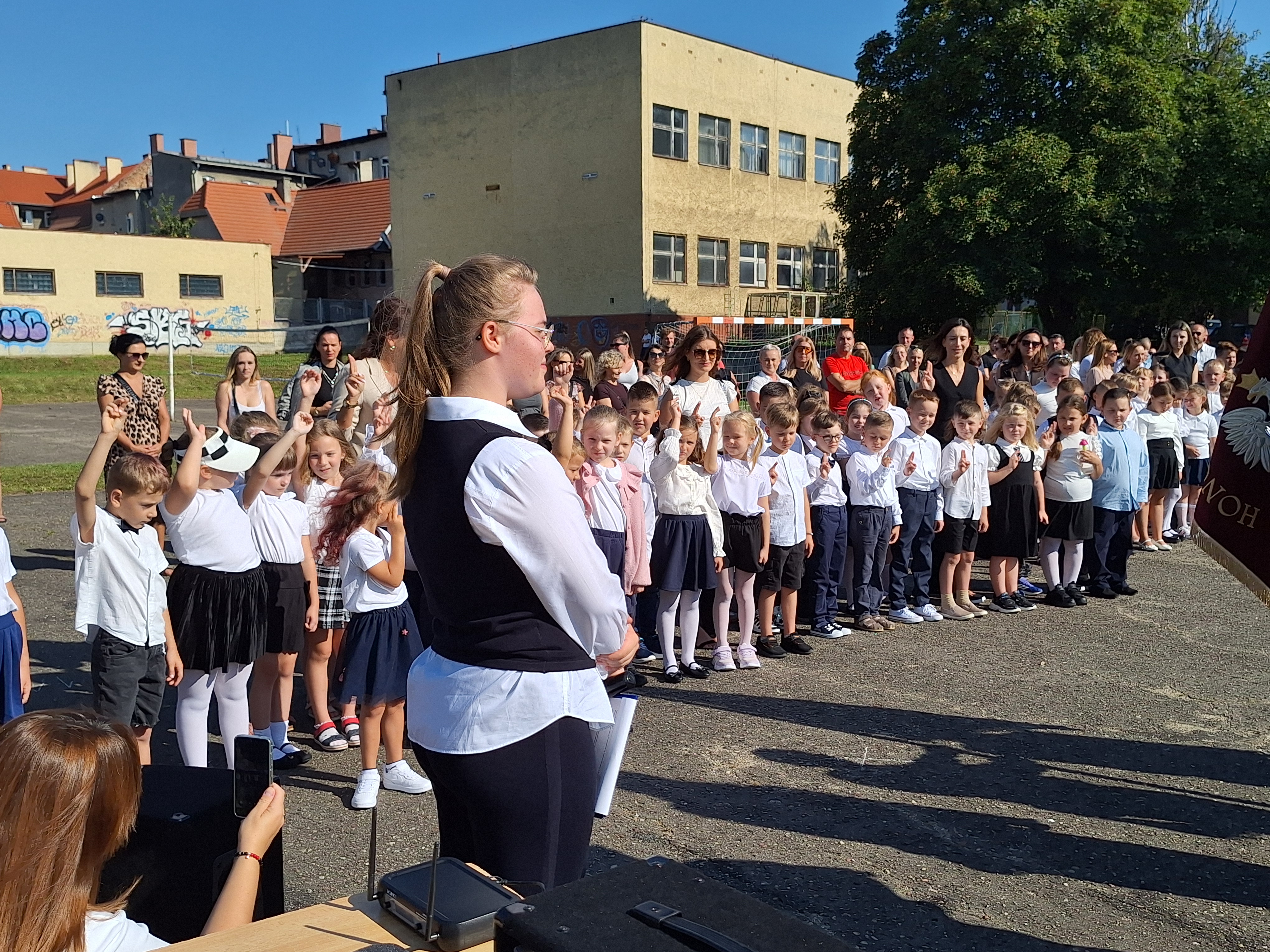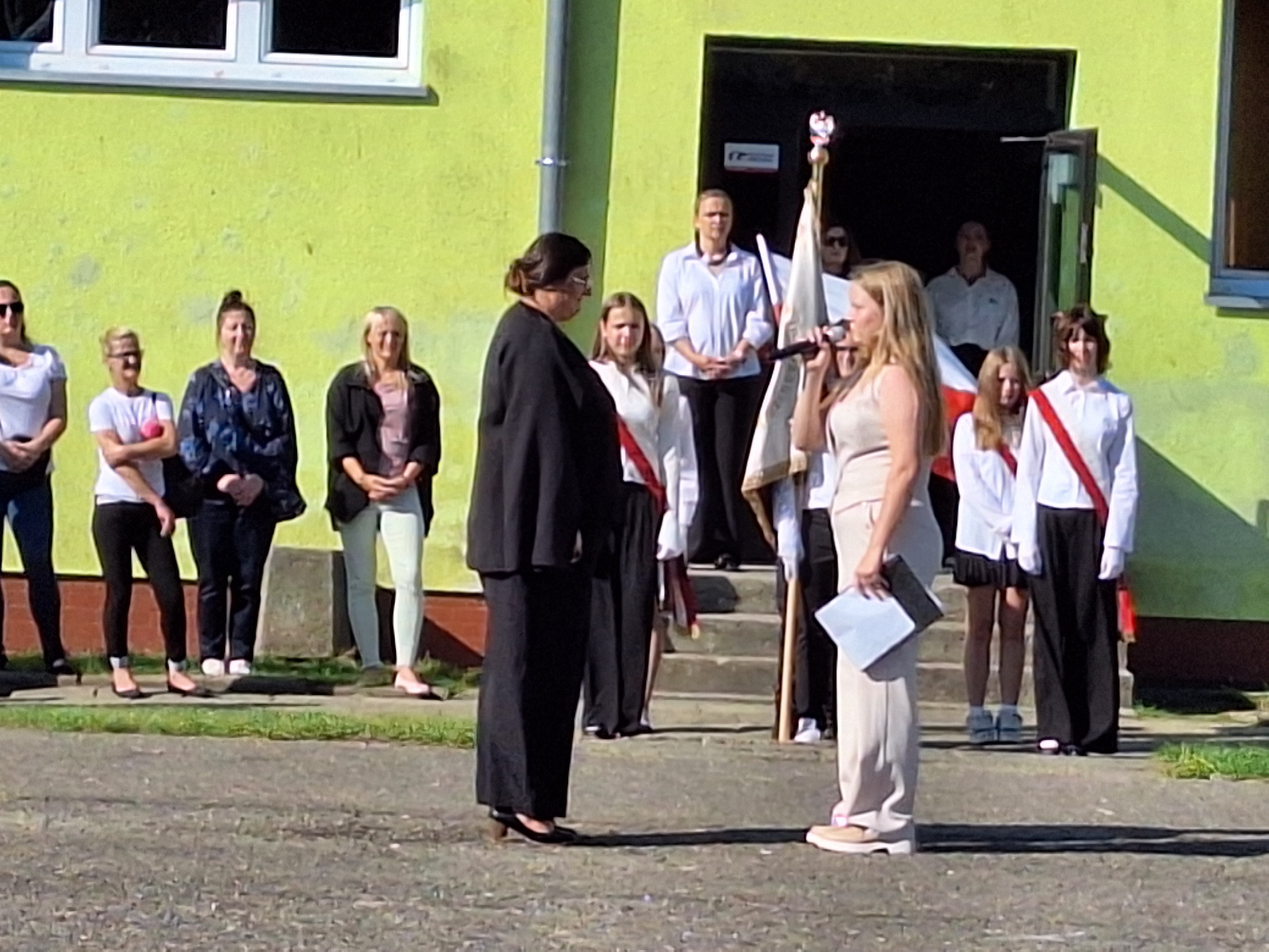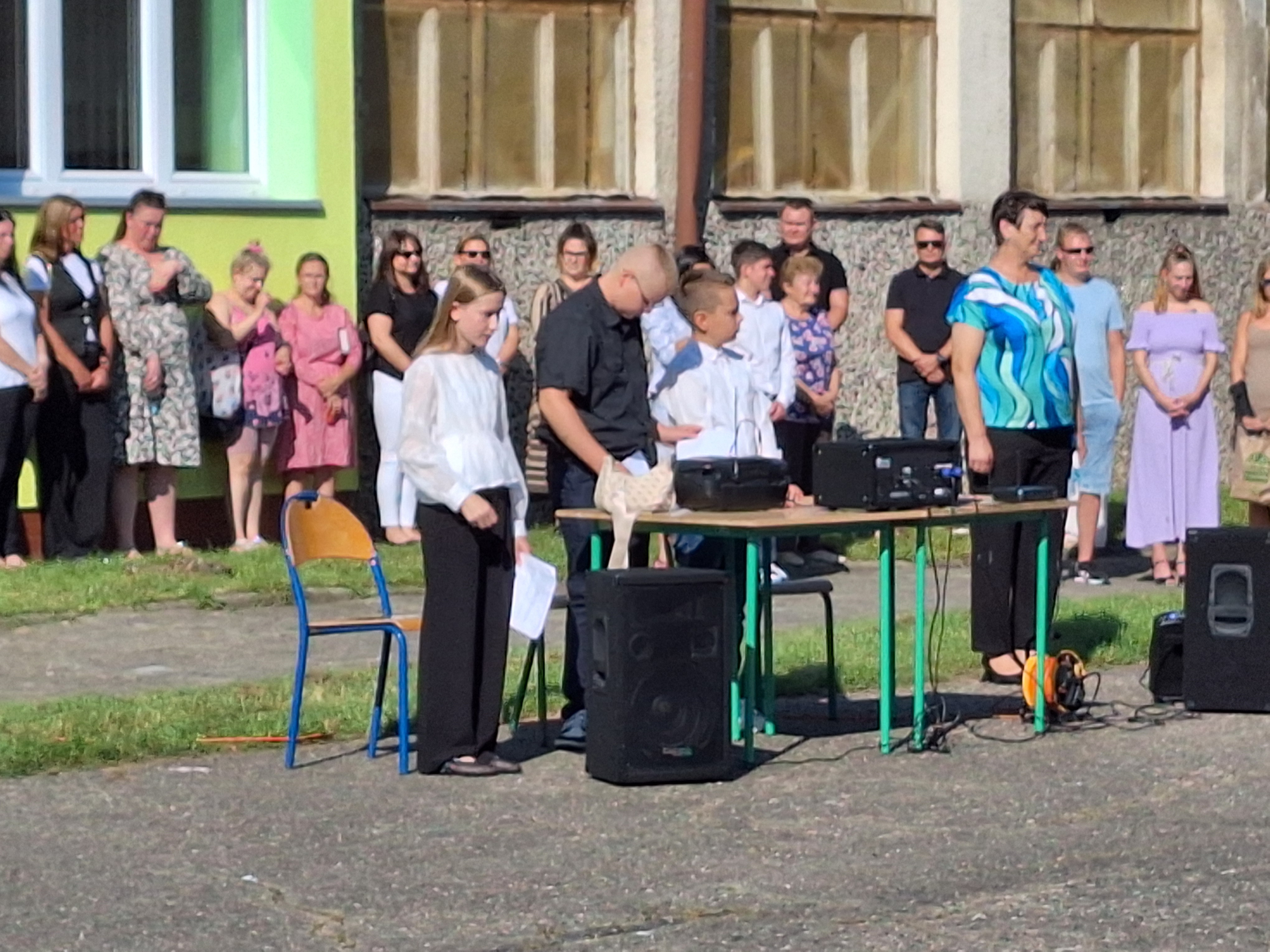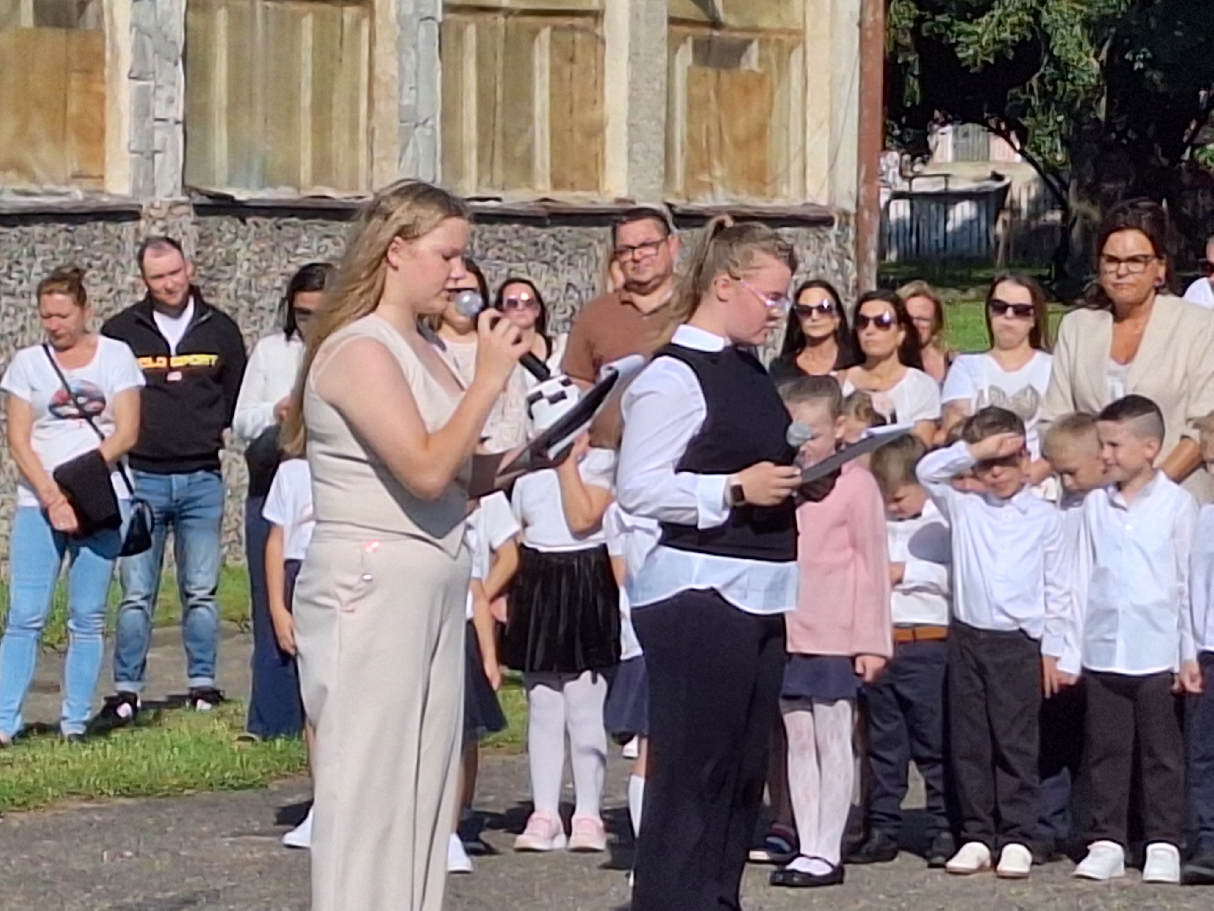 Dyrektor szkoły, Pani Marta Dolna, odebrała ślubowanie od uczniów klas pierwszych, a swoje przemówienie zakończyła słowami " rok szkolny 2025/2025 uważam za otwarty".