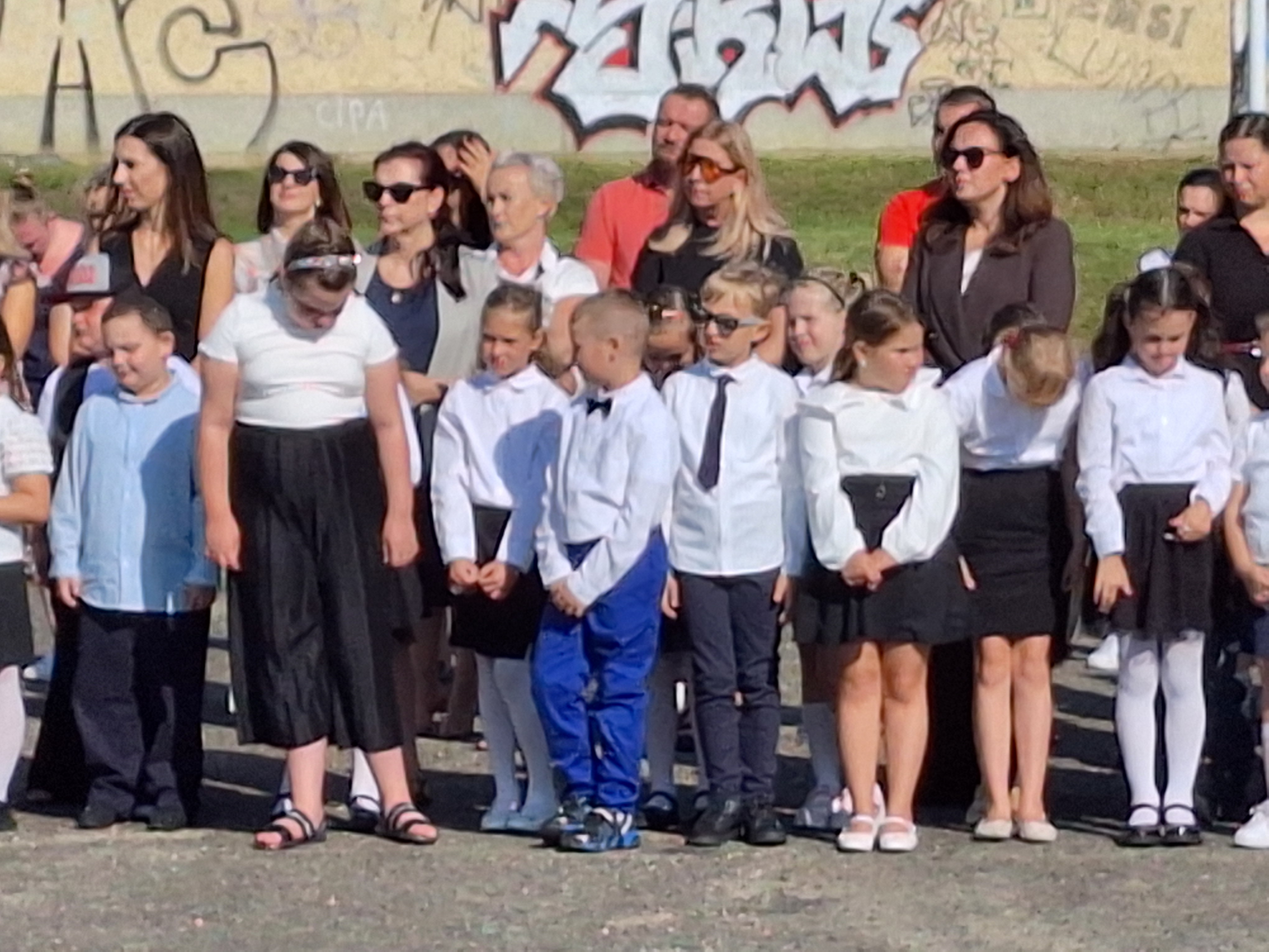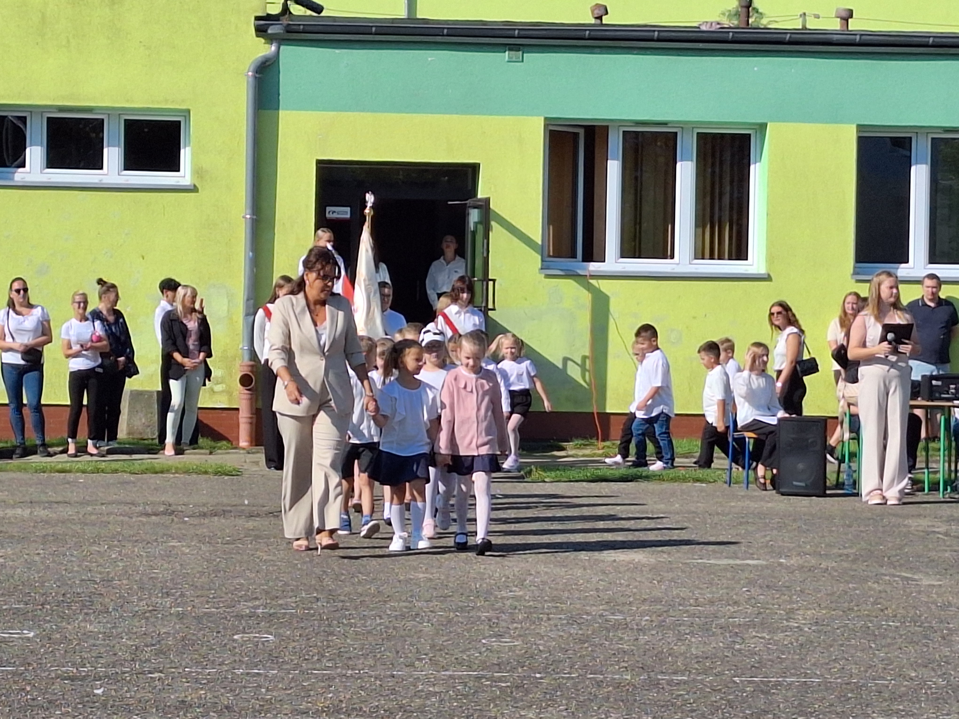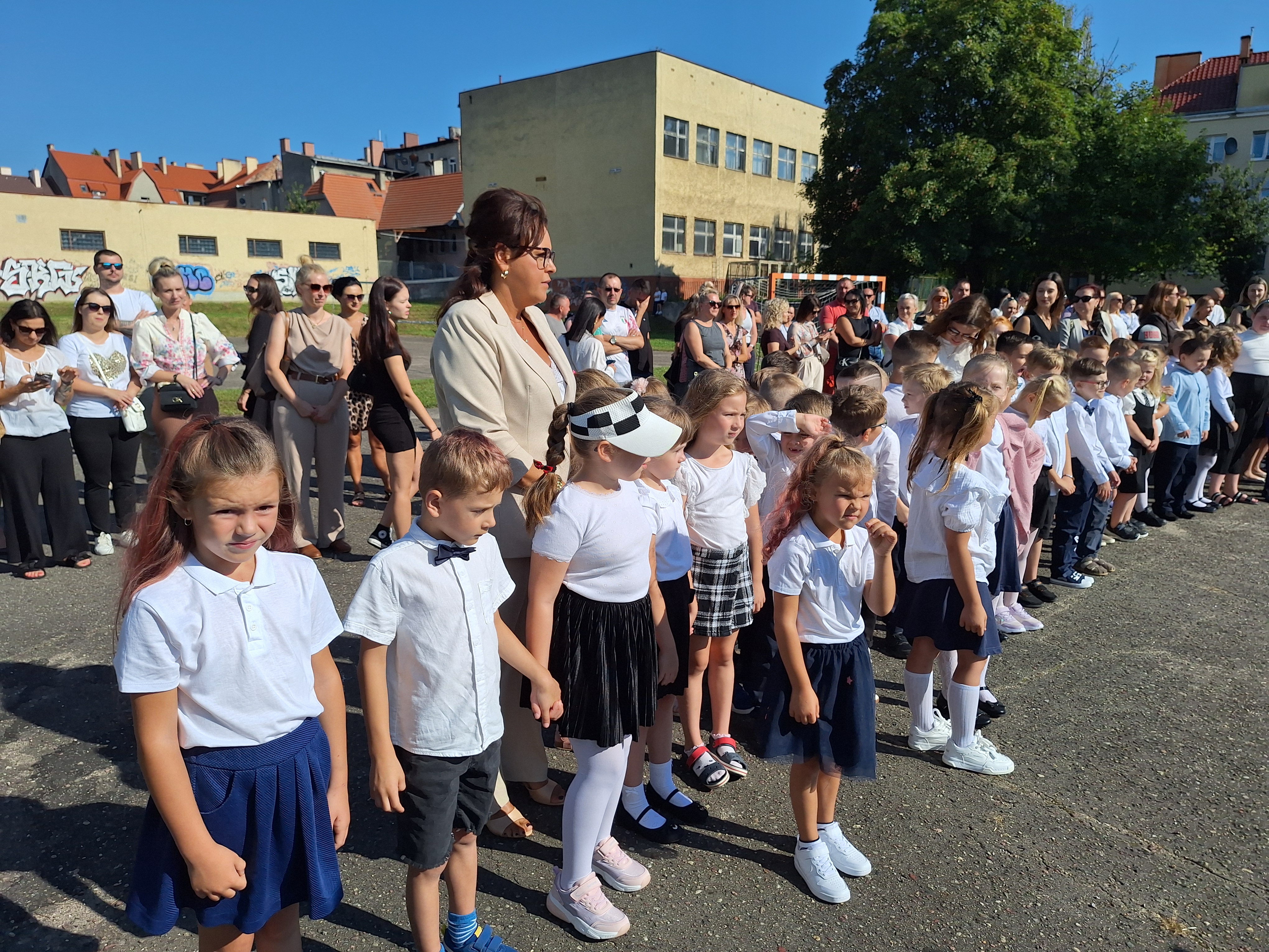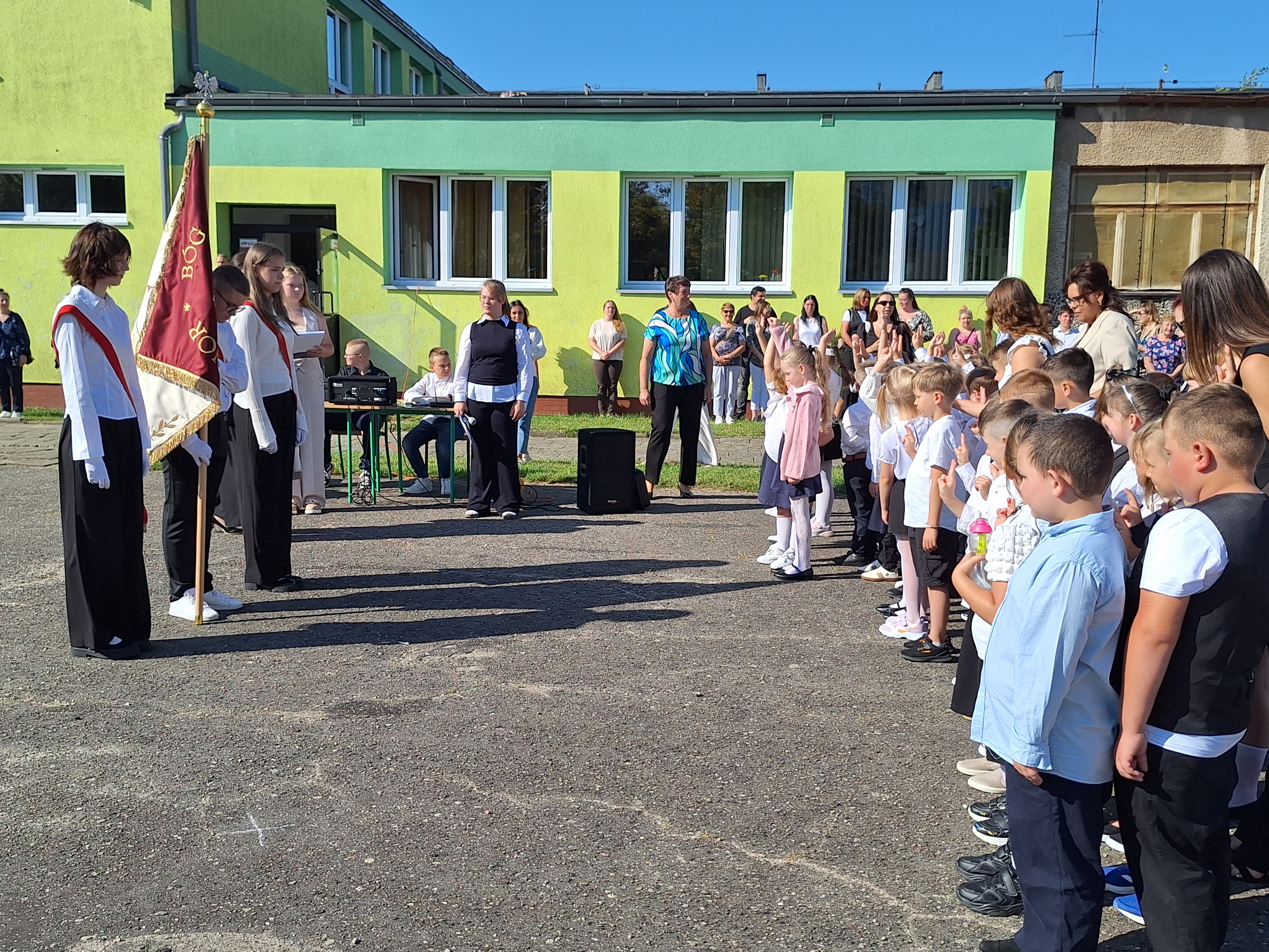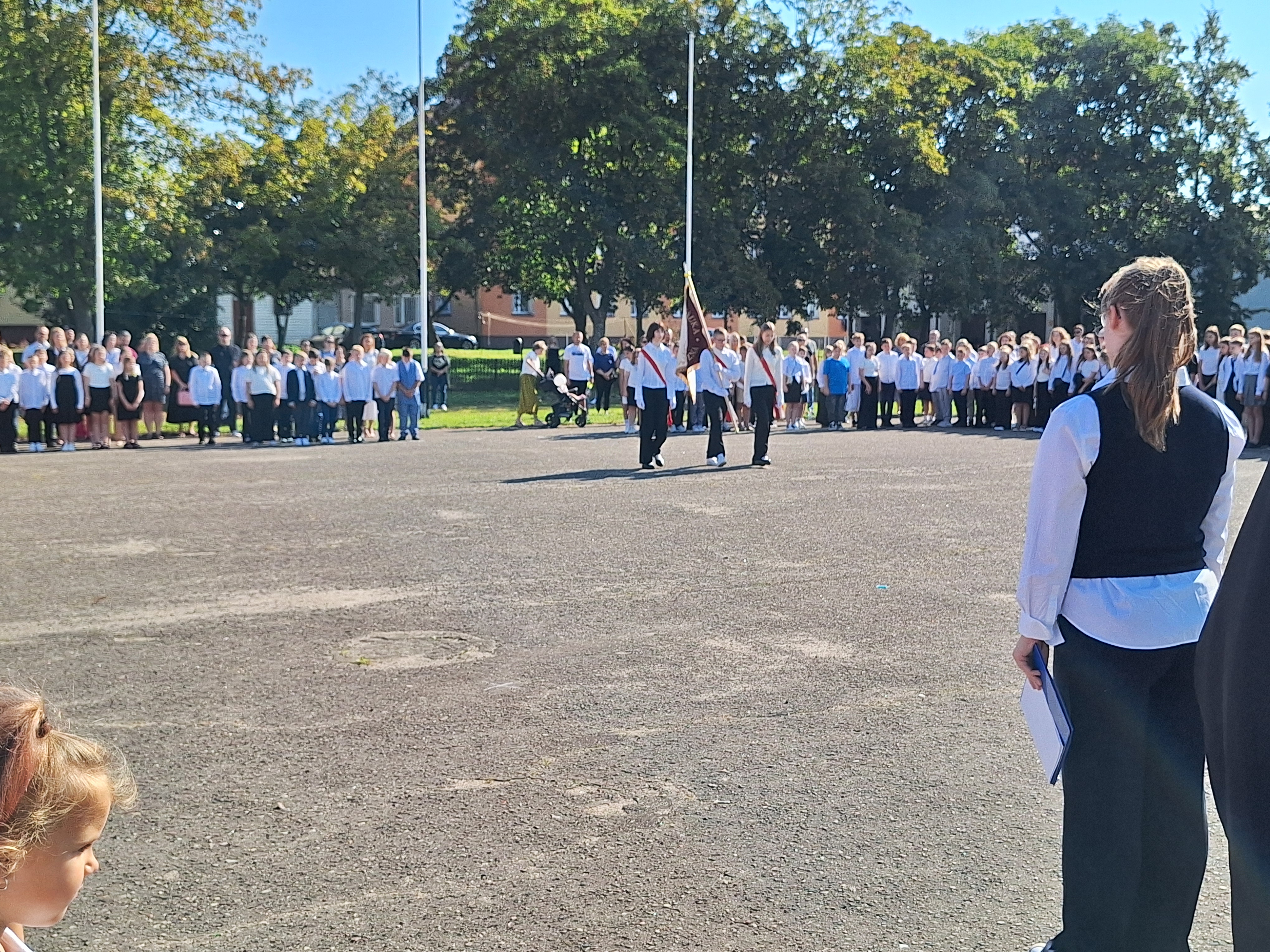 Dyrektor szkoły, Pani Marta Dolna, odebrała ślubowanie od uczniów klas pierwszych, a swoje przemówienie zakończyła słowami " rok szkolny 2025/2025 uważam za otwarty".
