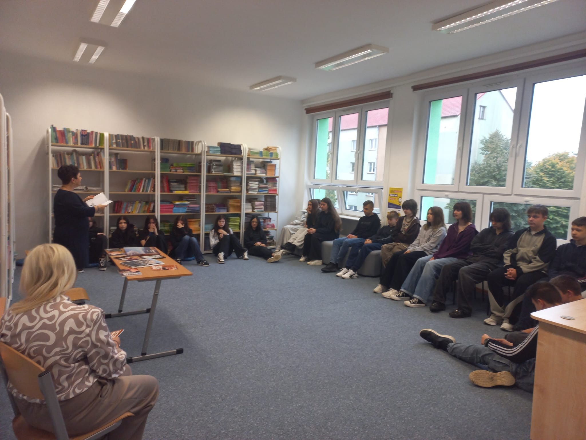 Naszym gościem była Pani Krystyna Nawój - poetka. Uczniowie posłuchali wierszy i poznali ciekawostki z życia poety. Dowiedzieli się jak można wyrażać swoje emocje słowem i skąd czerpać inspiracje.
