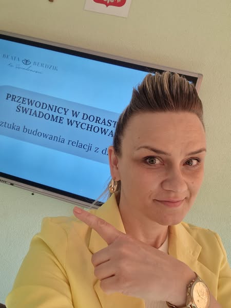 Spotkanie "Przewodnicy w dorastaniu - świadome wychowanie. Sztuka budowania relacji z dzieckiem." poprowdziła Pani Beata Berdzik - nasz szkolny pedagog.